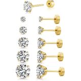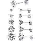 【HEALTHY MATERIAL】14 KARAT GOLD PLATED, Posts are Hypoallergenic & Double Notched for extra Security. Made with Genuine Zirconia: These stud earrings are the classic and so elegant that women of all ages can enjoy them all day every day. Five Pairs a Set include Stone Size: 3 , 4 , 5 , 6 , 7 mm Diameter