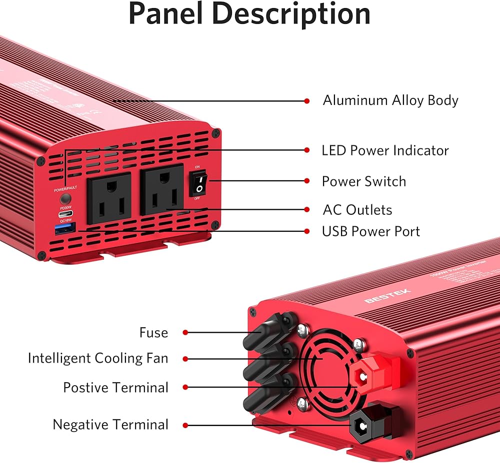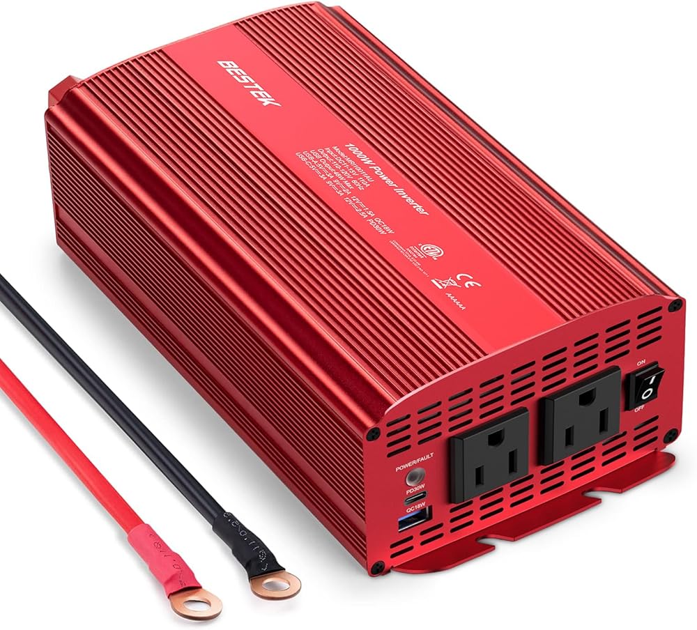 BESTEK 1000W POWER INVERTER : America's leading power inverter brand. Provides 1000 watts continuous DC 12v to AC 110v power inverter and 2400 watts of peak power.