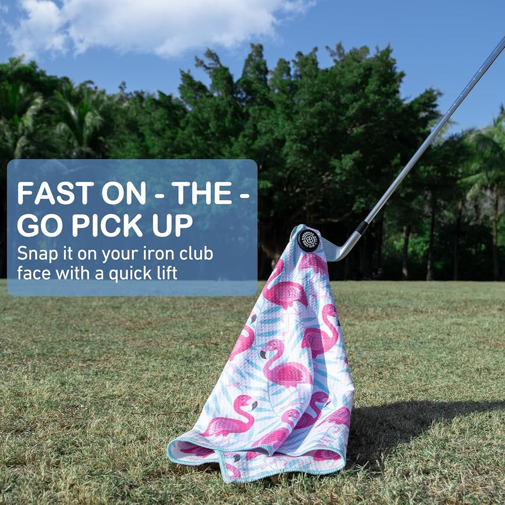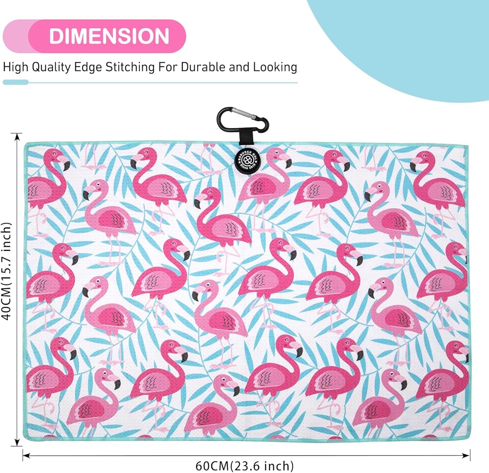 Magnetic Golf Towel for Men Women Golfer - Microfiber Golf Towel Magnet with Waffle Texture - Strengthen Magnet Golf Towels for Strong Hold to Metal Objects (4.Flamingo)