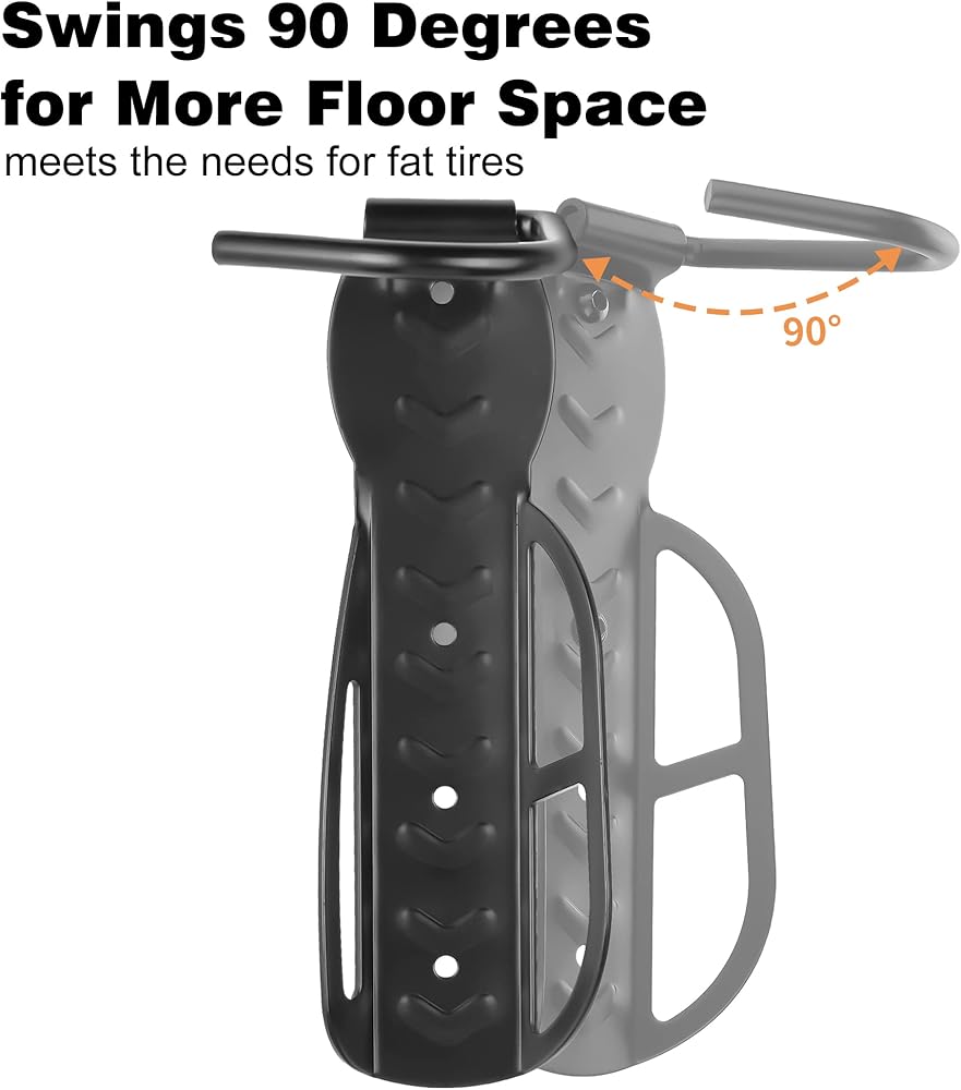 ✓【Swivel Design 】 – Space-efficient swivel design lays your bike flat against the wall for compact wall storage.