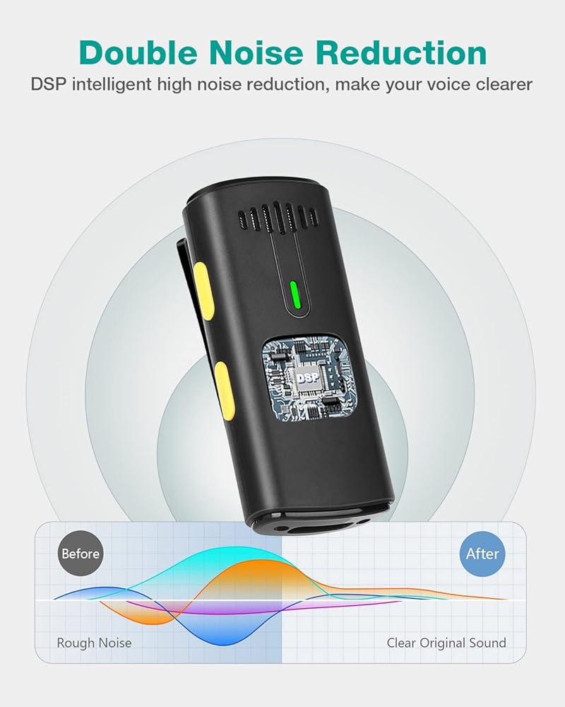 【 Professional-Grade Noise Cancellation】Equipped with intelligent noise reduction chips and high-density spray-proof sponge, our dual wireless microphone effectively eliminates background noise interference, ensuring superior audio quality and clear sound capture. With omni-directional capabilities, this microphone delivers the best clear timbre in any environment.