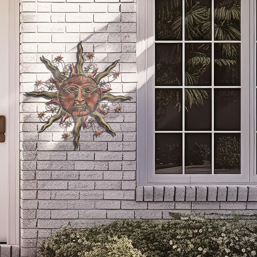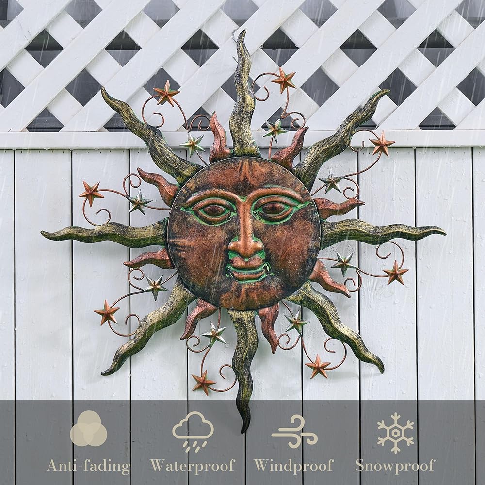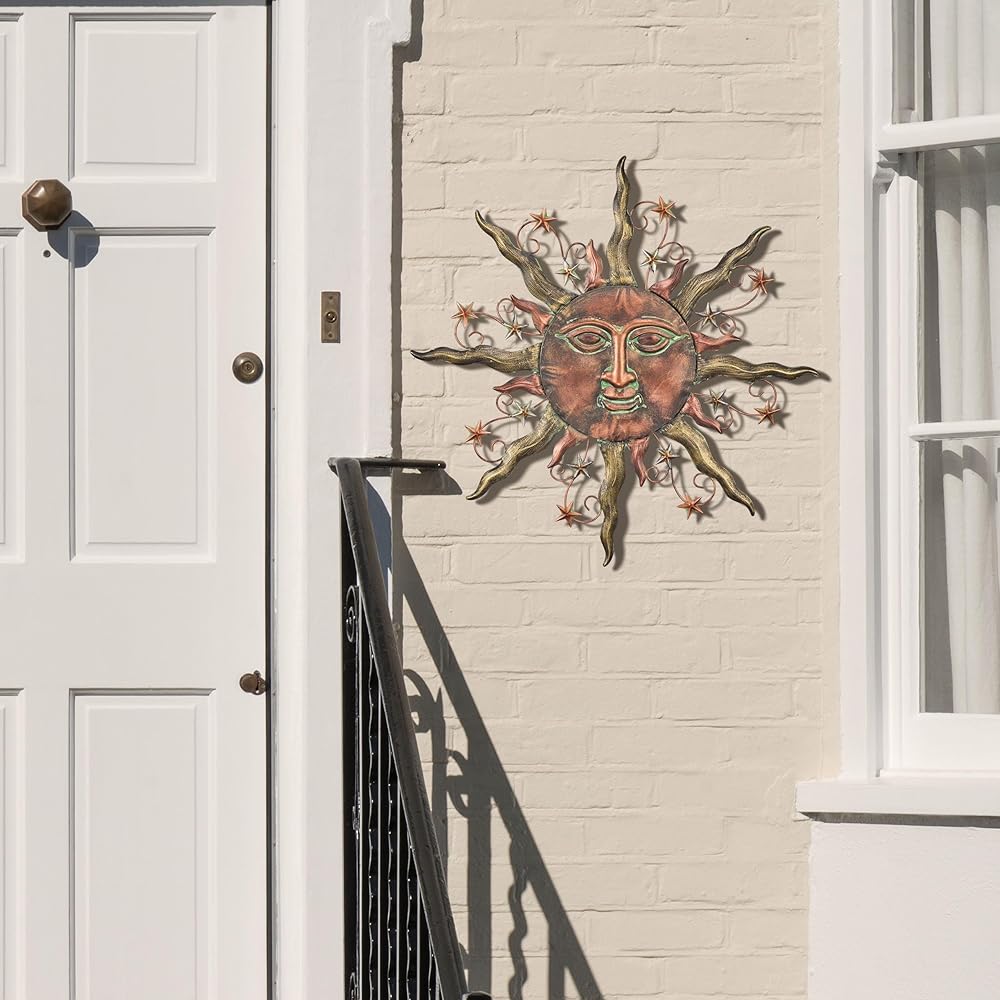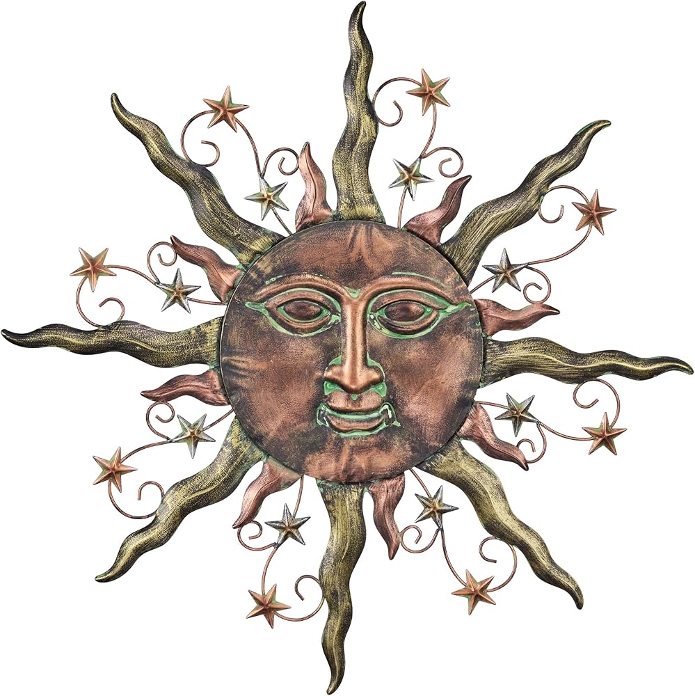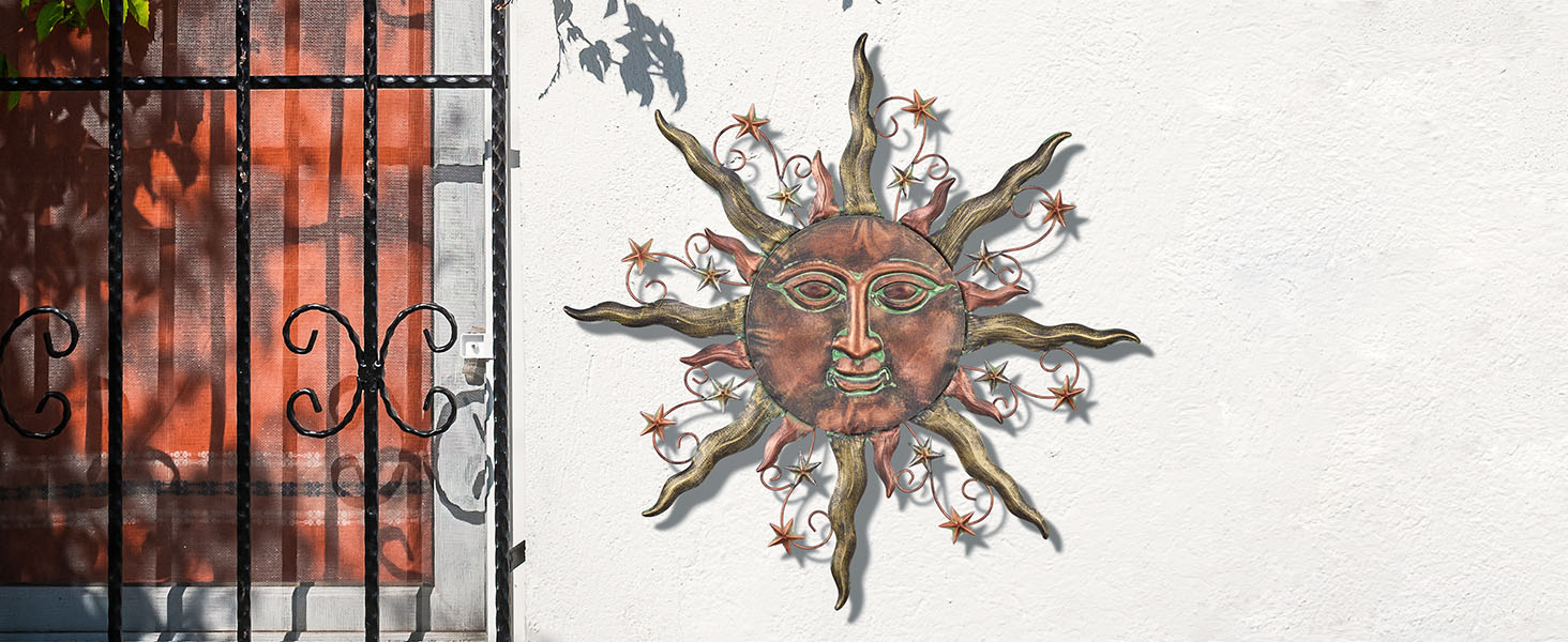 TERESA'S COLLECTIONS Sun Metal Wall Decor for Outdoor,24Inch Large Wall Art for Garden Decorations,Bronze Rustic Wall Sculptures Hanging for Indoor Home Living Room Patio Fence Balcony Gifts for Mom
