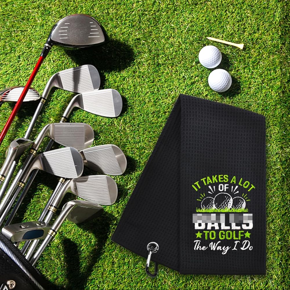 Hafhue It Takes A Lot of Bal to Golf Embroidered Golf Towel, Golf Accessories for Men Women, Golf Gift for Men Women, Retirement Gift for Dad Grandpa Golf Lover Golf Fan