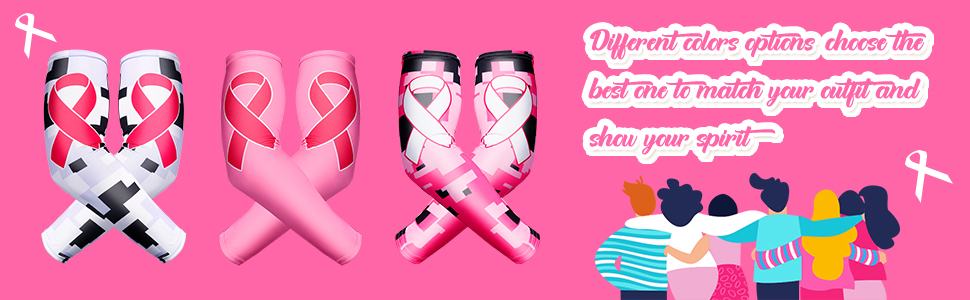 There are 3 different styles of sleeves in total, each style can match your dress well and to show your great spirits. Wearing these beautiful pink ribbon arm cover sleeve can make your outfit look more attractive in big events supporting breast cancer.