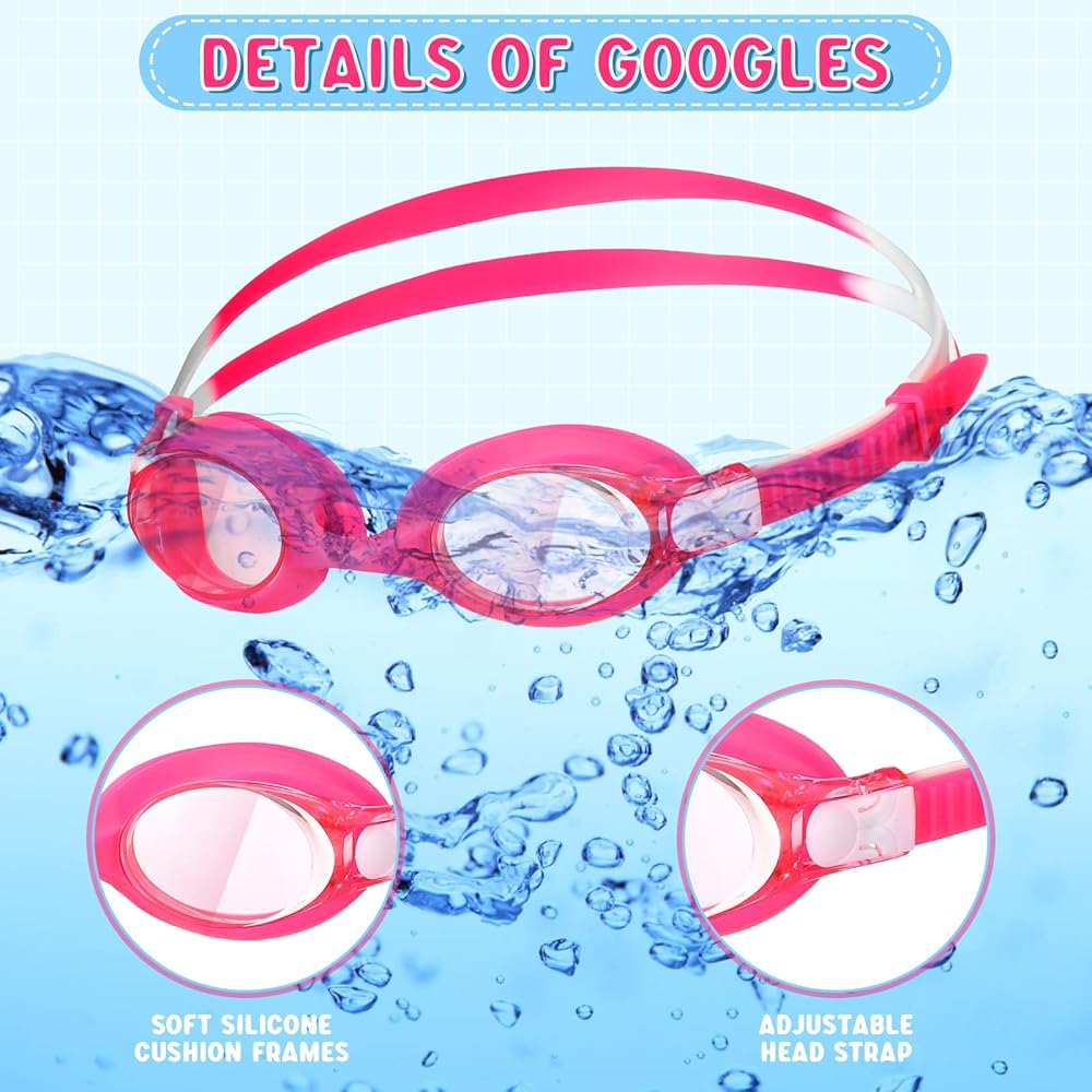 Our swim cap, goggles, ear plugs and swim nose clips are mainly come in pink, rose red and purple color, blending with other brisk colors, simple to attract kids' attention, making them love to swim.