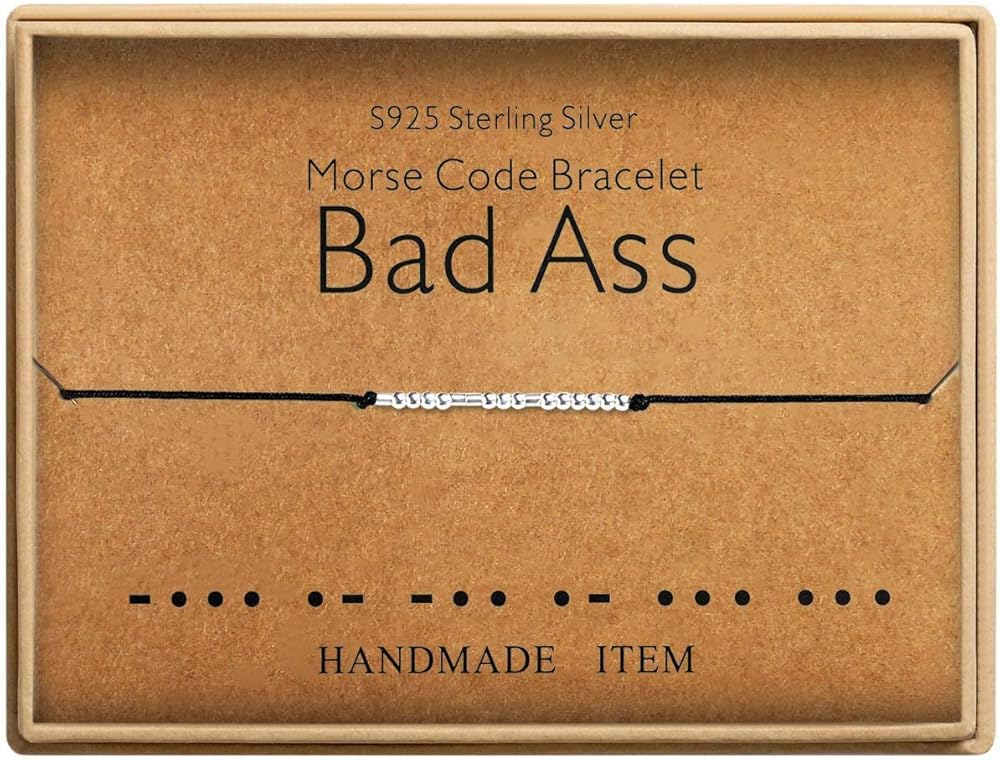 Bracelet Material and Size: Material: Handmade morse code bracelets, made of Solid 925 sterling silver beads for word and black silk cord. Size: Waxed cord with morse code chain length for the perfect fit - 7 inches is the most popular size for adult women.