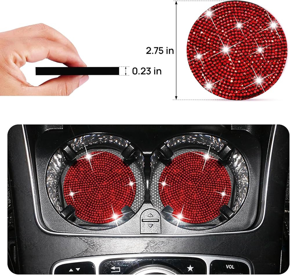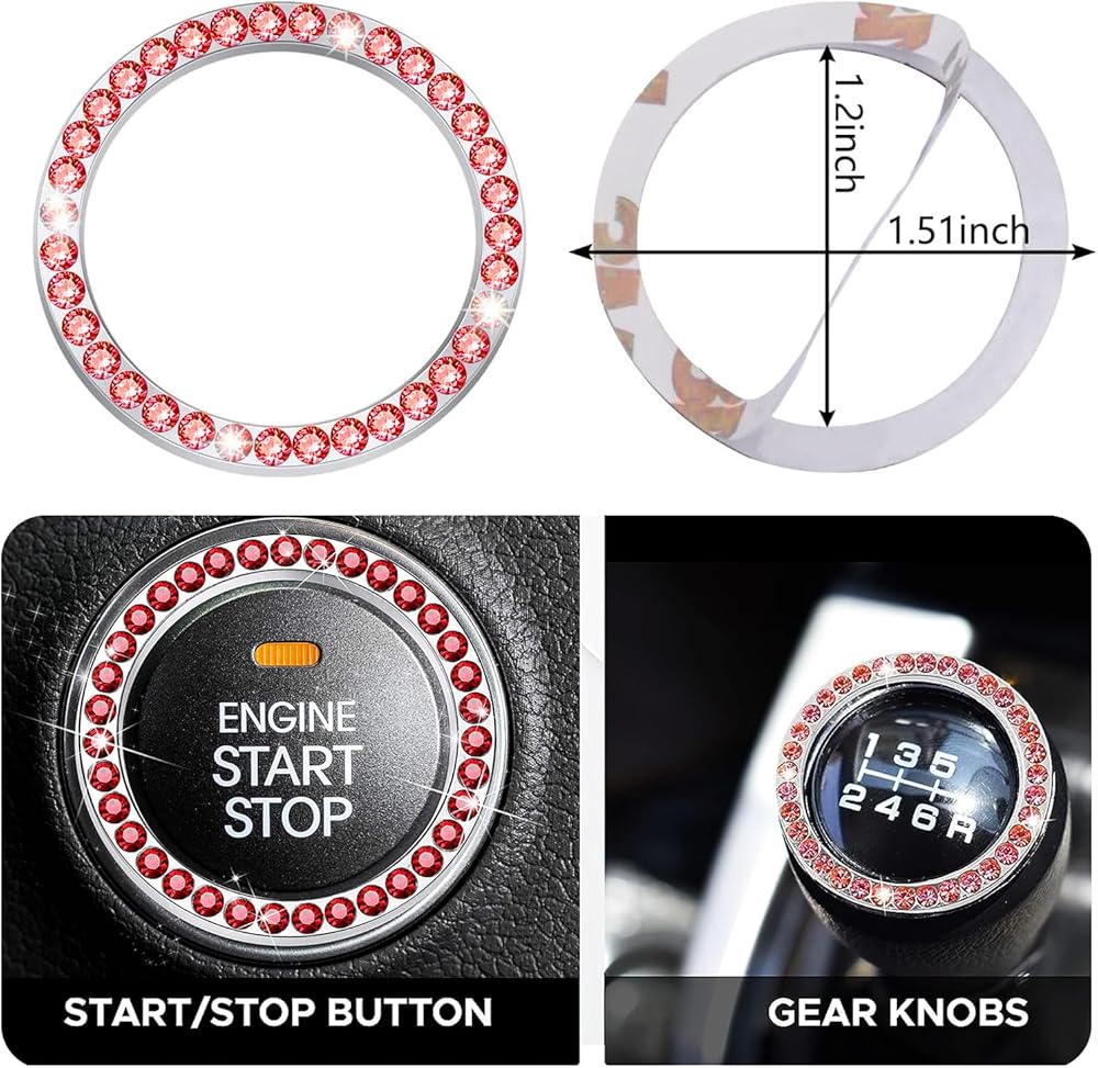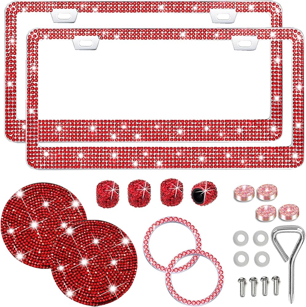 Package Included: The package includes 2 x bling license plate frames, 2 x bling cup coasters, 4 x bling car tire valve stem caps, 1 x bling push button start.