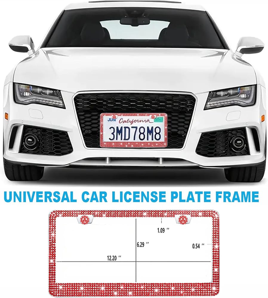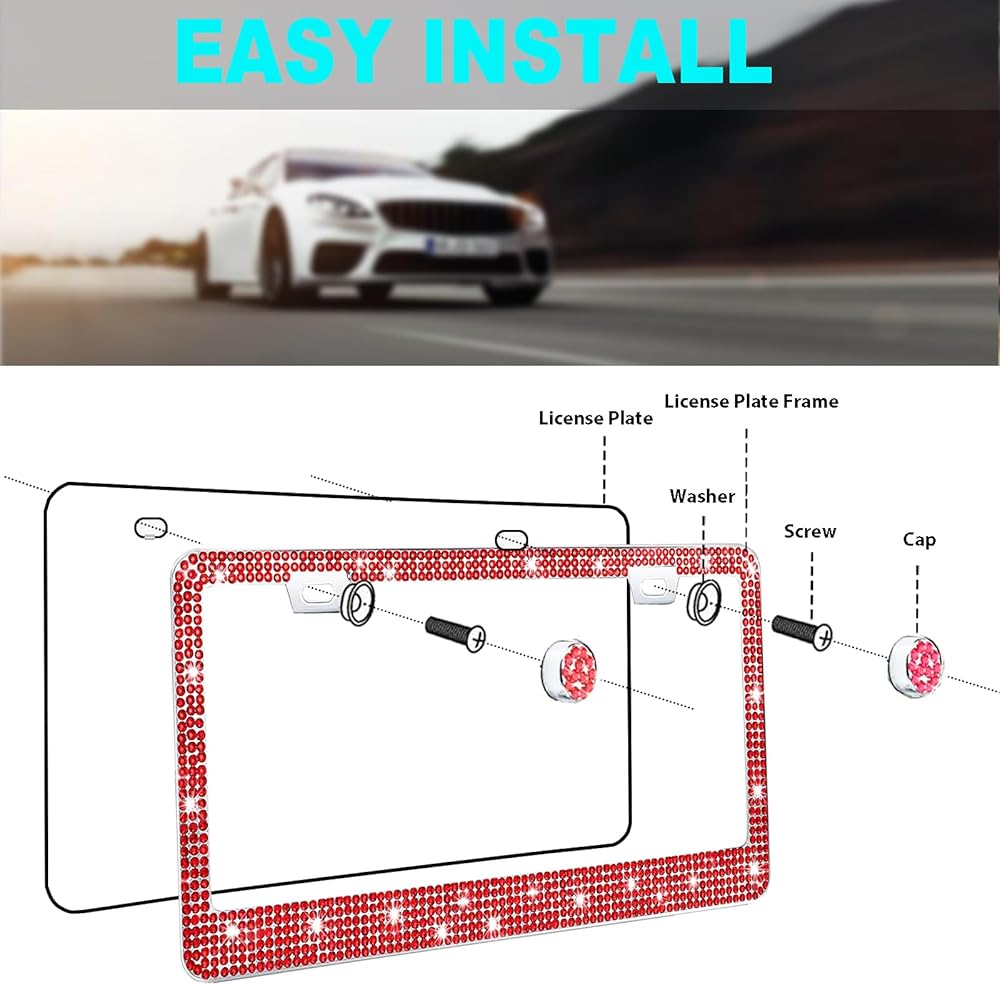 Easy to Install: The sparkle license plate frame includes accessories, nuts, anti-theft screws, free AA rhinestones, and matching screwdrivers. The shiny license plate frame is easy to install without any special tools.