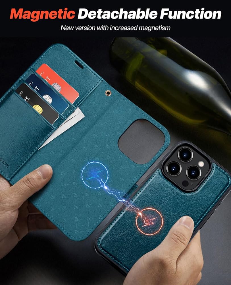 Compatibility: This wallet case is only compatible with the iPhone 15 Pro Max (6.7-inch display). Please confirm the phone model in your phone (Settings – General – About – Model Name) before purchasing. If you need another model of wallet case, please click the link [Visit the OCASE Store] below the title. Note: This case may affect the vibration and compass functions due to the magnetically detachable design.