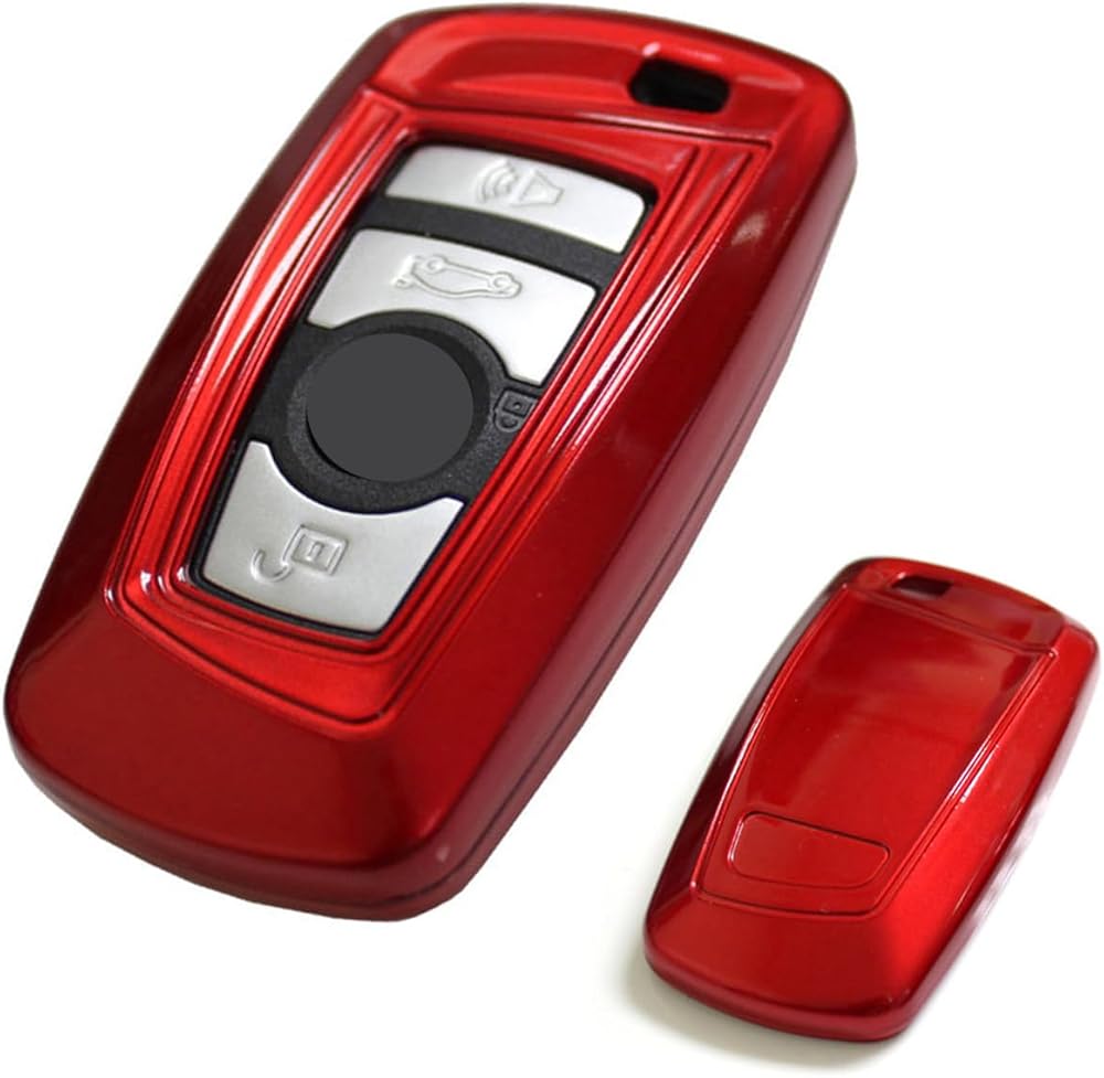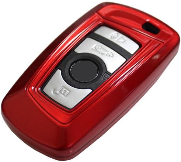 iJDMTOY Exact Fit Red Finish Key Fob Hard Shell Cover Compatible With BMW 1 2 3 4 5 6 7 Series X3 2nd Gen Smart Key (FCC: YGOHUF5767 YGOHUF5662, etc)