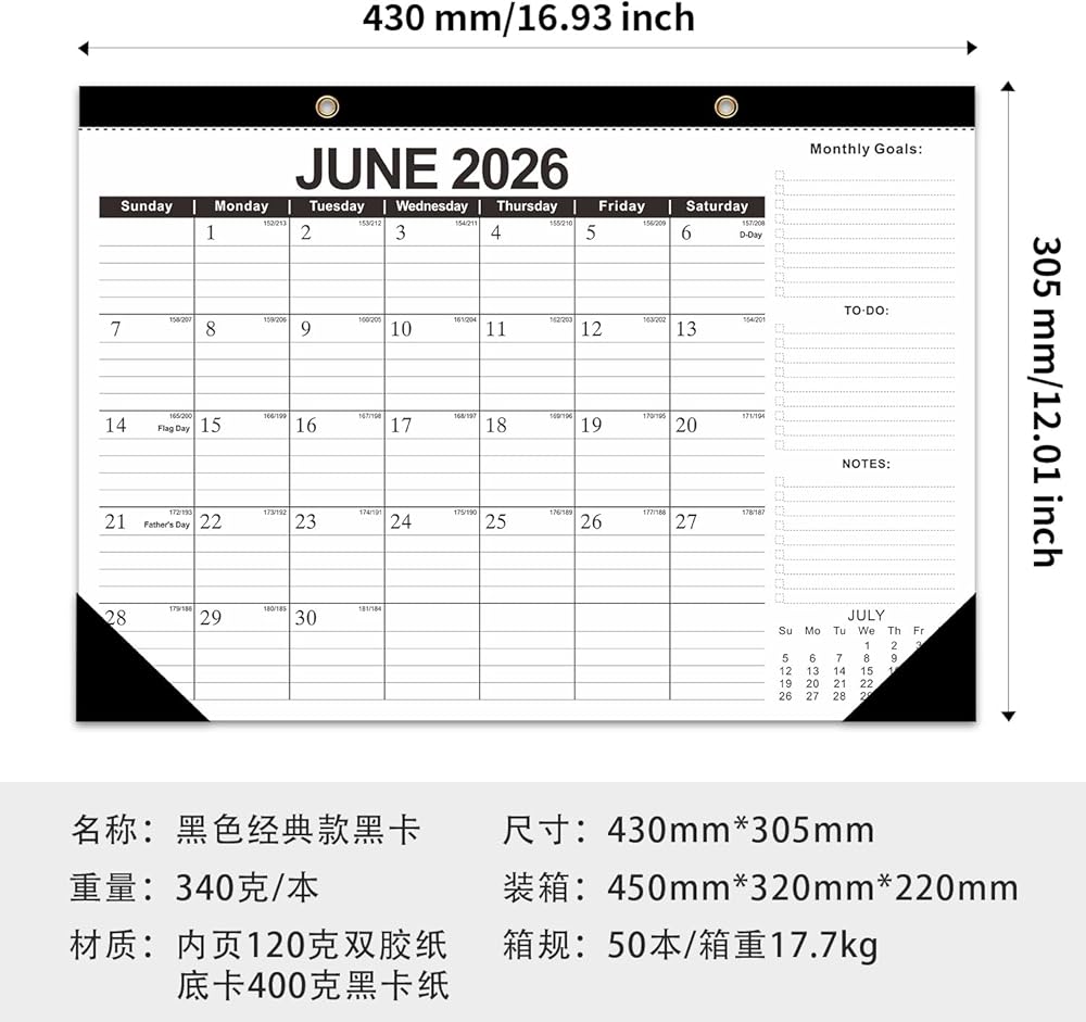 There are two round holes at the top of the desk calendar, which can be hung on the wall or used on a desk. Pagination lines allow you to tear off each page easily. It's perfect for school, home or office.
