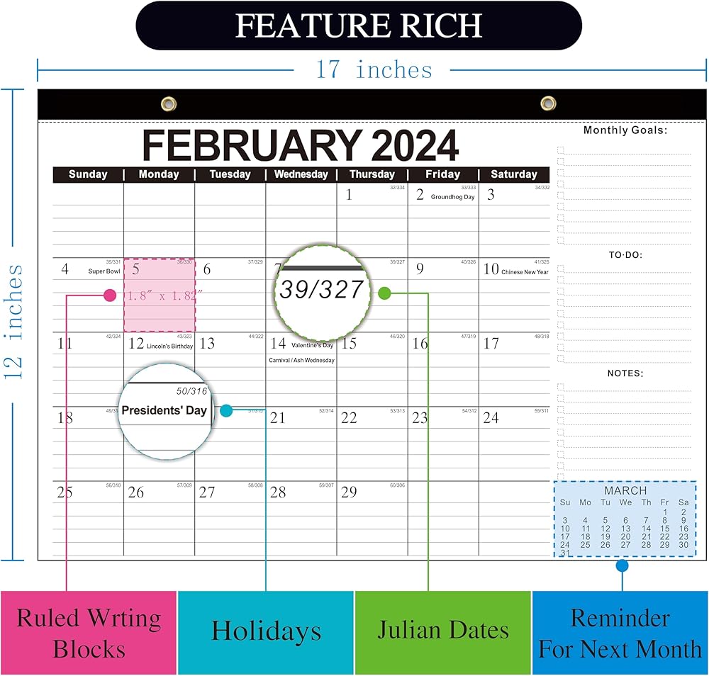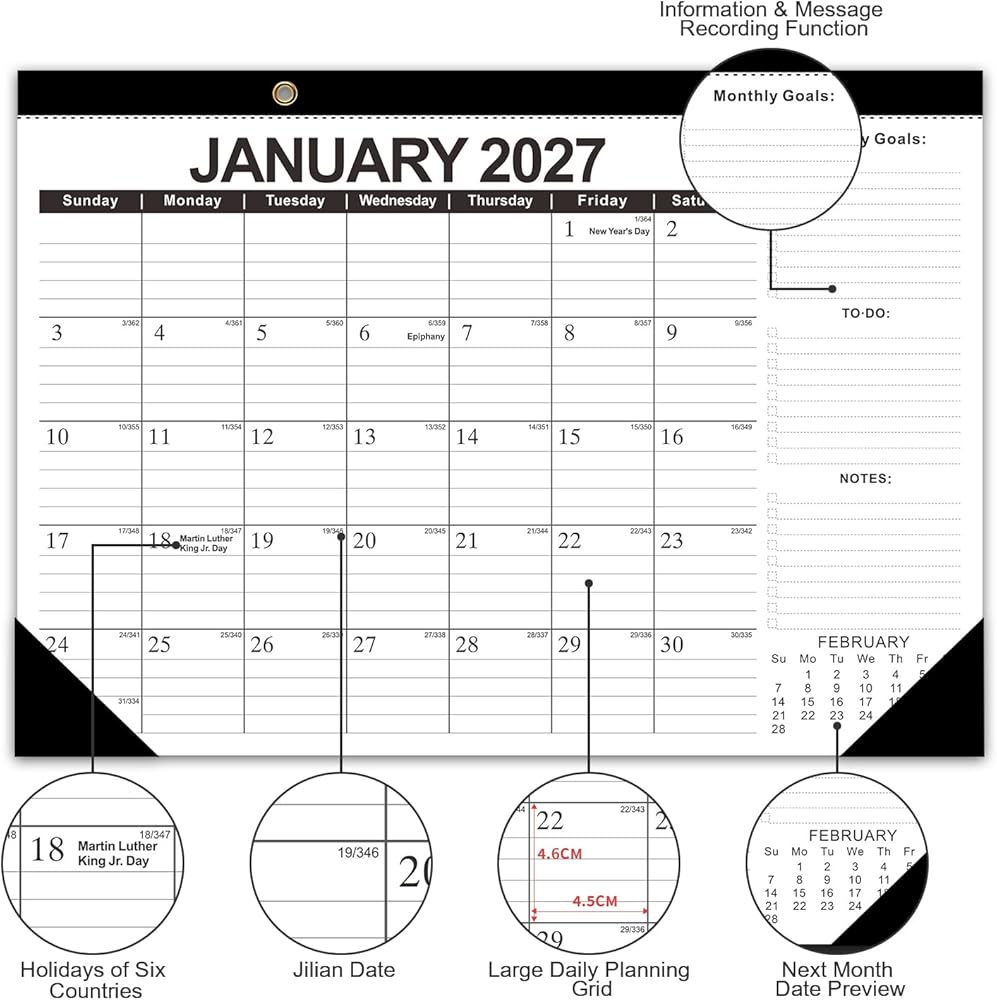 The desk calendar features large writeable line squares, an unrivaled 100 GSM thick paper that won't bleed, and a durable backplate that gives you a solid writing surface to write boldly and confidently.