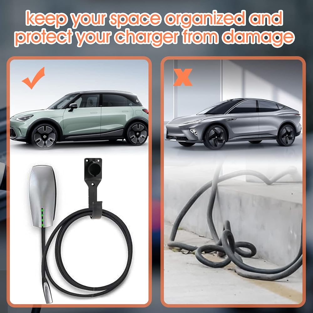 Durable and Heavy-duty: The EV Charger Holders are made of heavy-duty and anti-rust metal which can hold your EV Charger steady. The holster is made of ABS plastic to avoid wear on the charging plug. It is extremely durable and can be used both indoors and outdoors.
