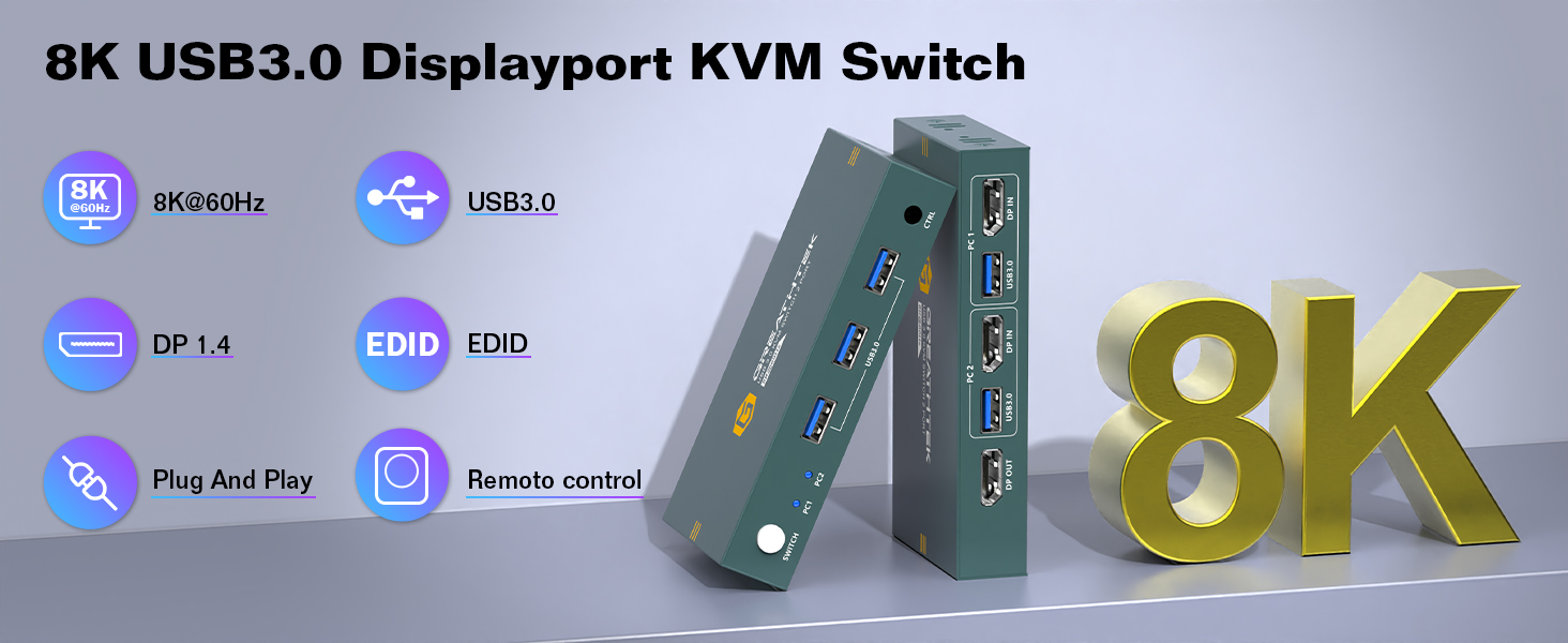 [Adaptive EDID]Our dp kvm switch no need any driver, plug and play,Adaptive EDID.It supports supports DP1.4 standard, Compatible with Windows 10/8/7/XP, Linux, Mac, etc.