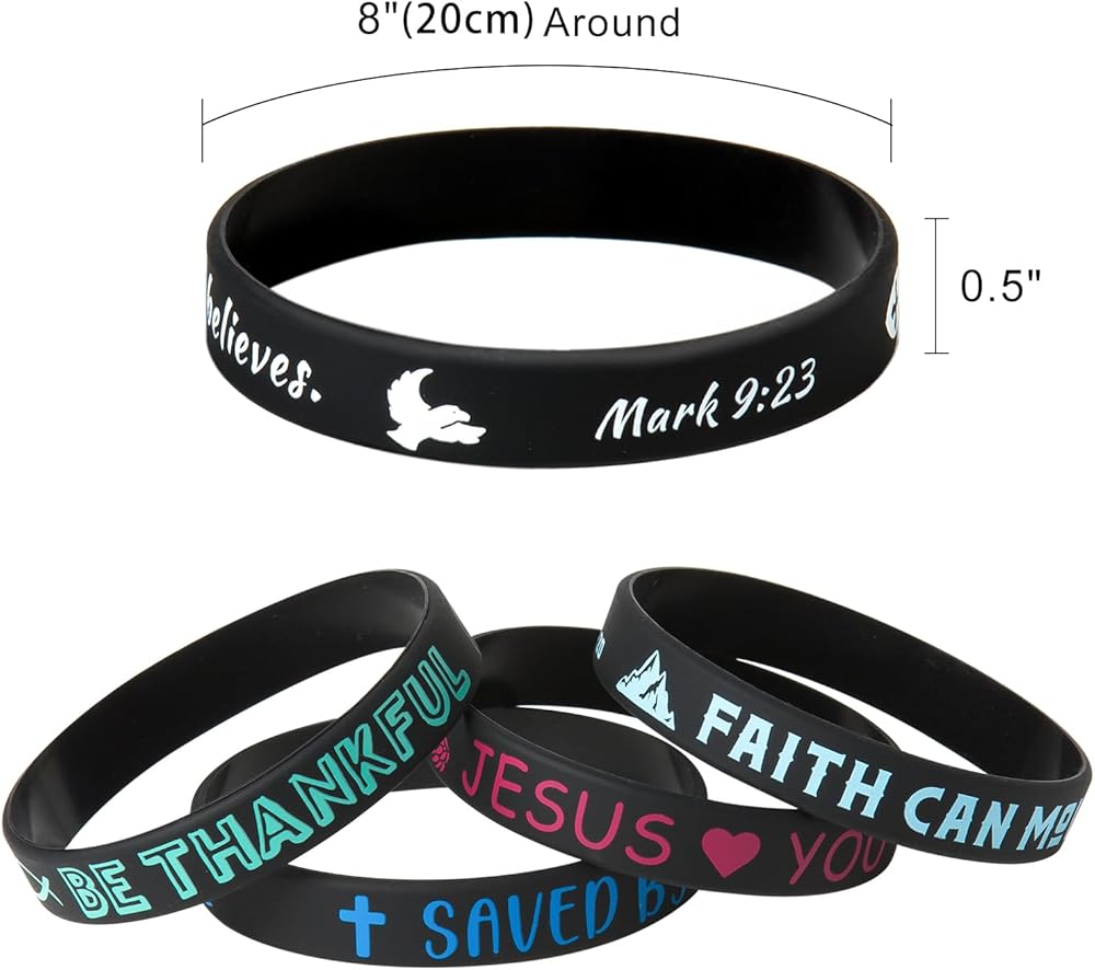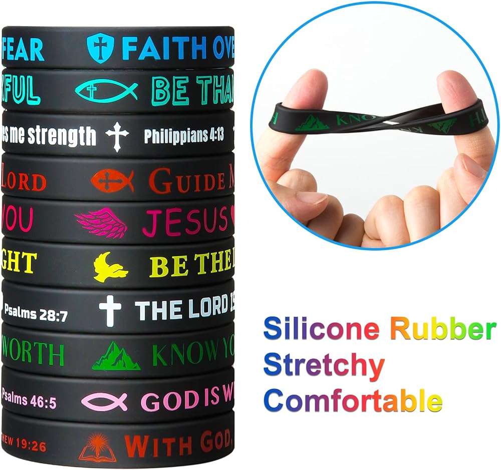 Inspire you and others to have a strong faith in God with these Bible verse bracelets. With inspirational quotes, self-improvement and positive thinking, these religious silicone wristbands are perfect for birthdays, Christmas, Easter, family, church gatherings and more. Send them your care and heartfelt encouragement.