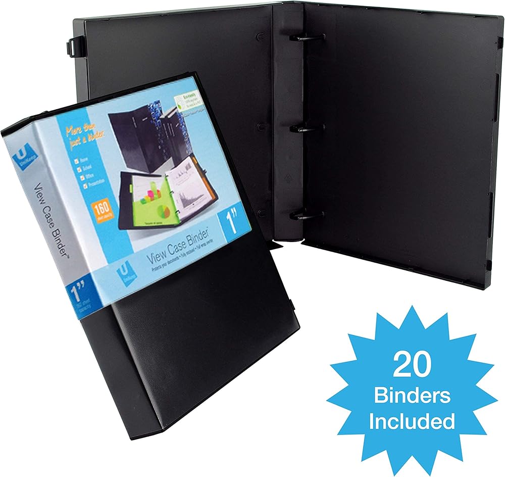 UniKeep 3 Ring View Binder - Binder Case is Fully Enclosed - Available in White, Clear, or Black and in Different Spine Sizes (Box of 20, Black, 1.0 Inch)