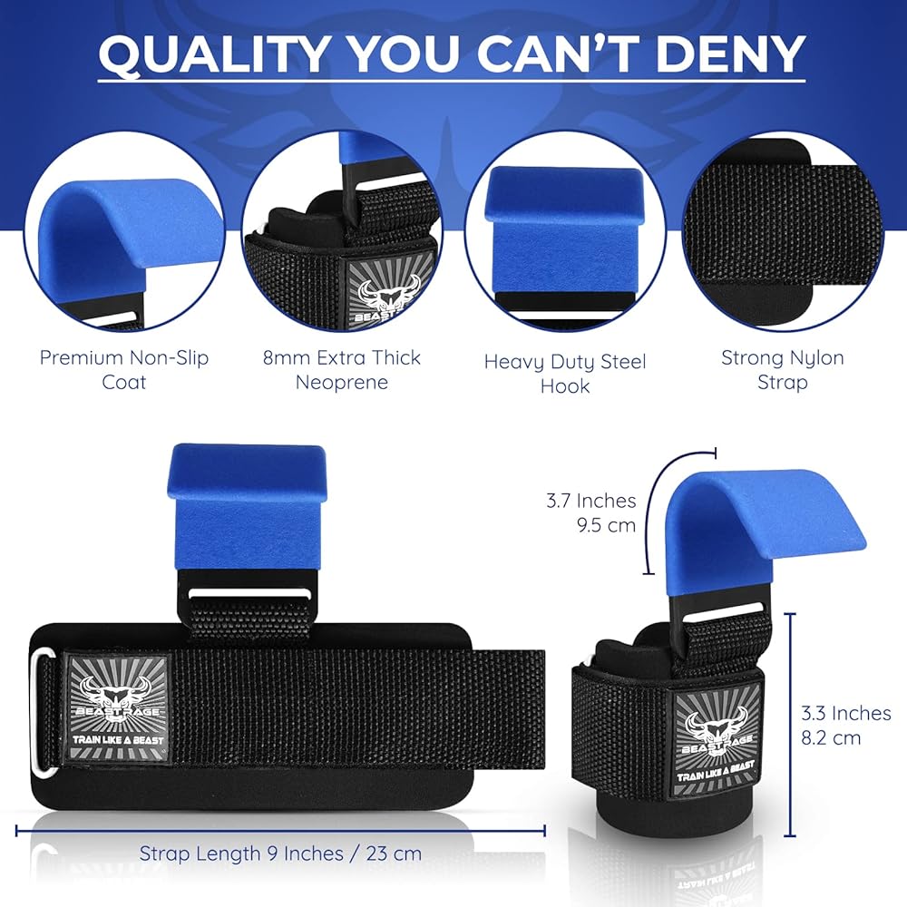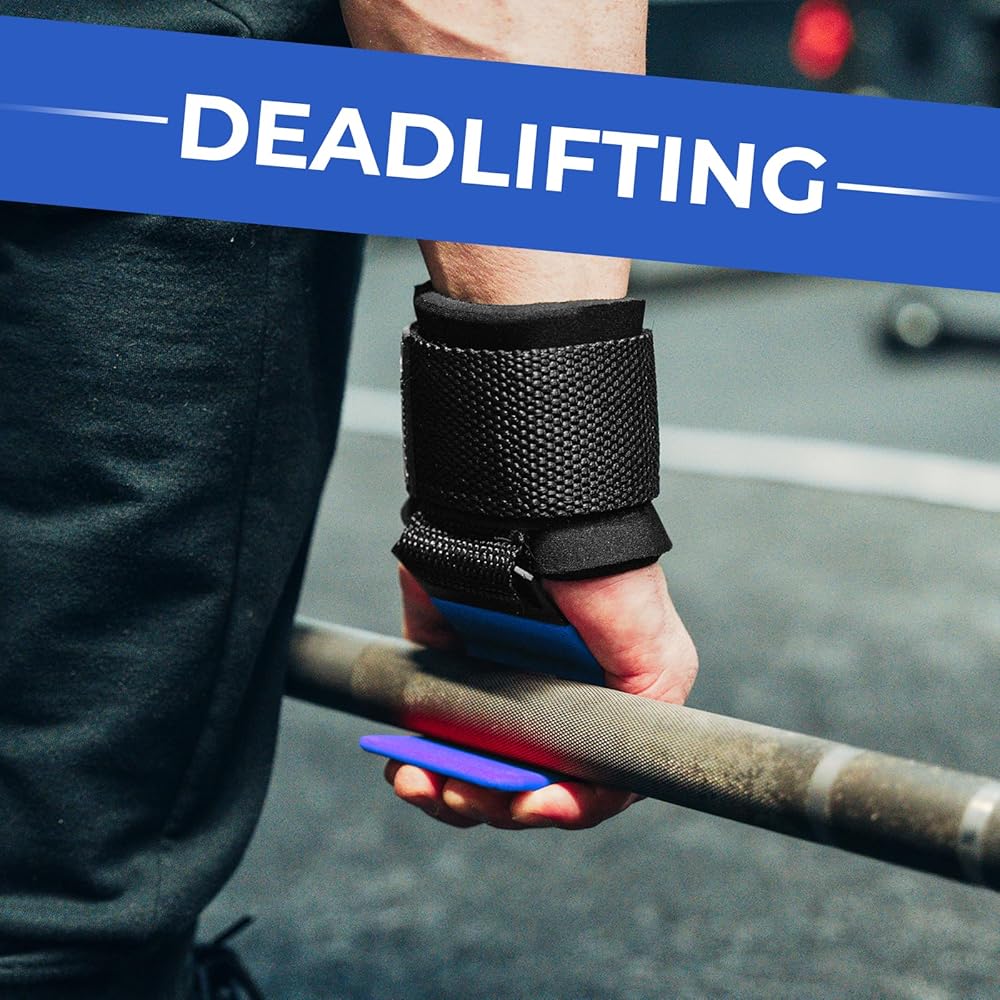 Powerlifting hook straps keep your grip on a bar while you work out in the gym and offer enough wrist support a more stable grip while holding padded cushioning which will improve the effectiveness of your pulling exercises and hard workouts.