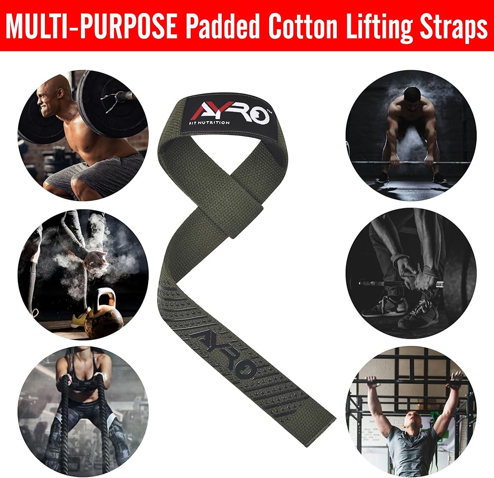 Lifting Straps,ADVANCED GRIP SUPPORT FOR HEAVIER LIFTS - Elevate your weightlifting performance with AYRO's weight lifting straps featuring neoprene padding. Whether you're shrugging, deadlifting, or hitting an intense back workout, these straps provide unparalleled support for your wrists and hands. Try them risk-free today and join a brand that embodies dedication and makes no excuses. These long-lasting, anti-slip straps significantly boost any workout, irrespective of the exercise or routine