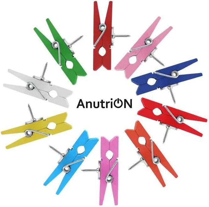Premium Material: Anutrion push pin clip is composed of a wood clip and metal thumb tacks, safe and environmentally, durable and reusable and not easy to fall off and easy to hold papers in place without any traces.