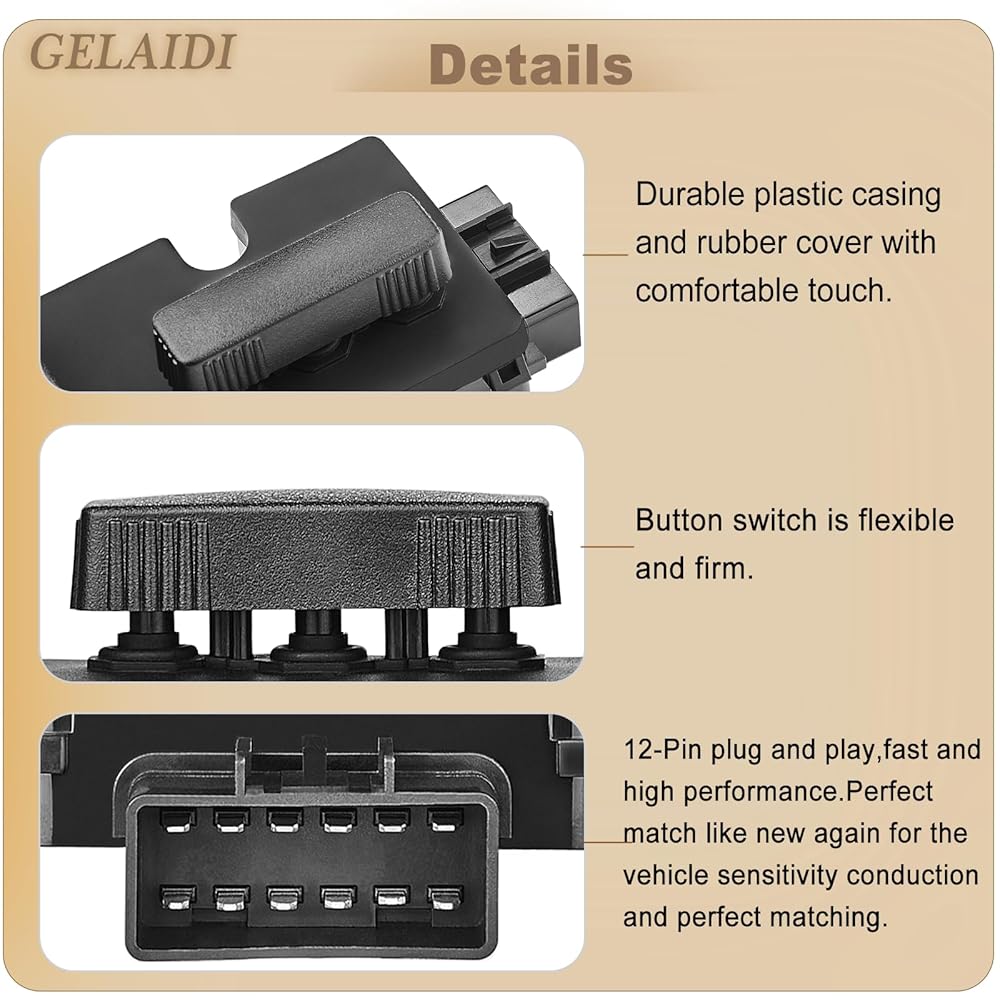 👍[PREMIUM QUALITY] - This power seat switch is a direct-fit replacement electrically operated switch that replaces damaged OE units restoring door seat function, 12 pins terminal connector.Made of Eco-friendly and durable ABS material to support scratch-resistant, anti-rust, colorfast, smoothly surface and soft-touch. With high-tech internal circuit boards, 100% tested to verify both mechanical and electrical switching performance.