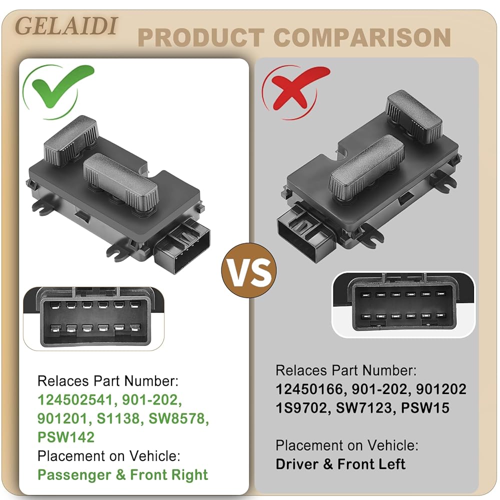 👍[REFERNCE NUMBER ] - 12450166, 901-202, 901202, 118330, PSS-9212, PSW15, SW7123, 1S9702 perfect replace the drive side seat adjuster switch on your Cadillac, Chevy or GMC Sierra, Please check your old part against the picture to make sure this parts fits on your vehicle exactly.