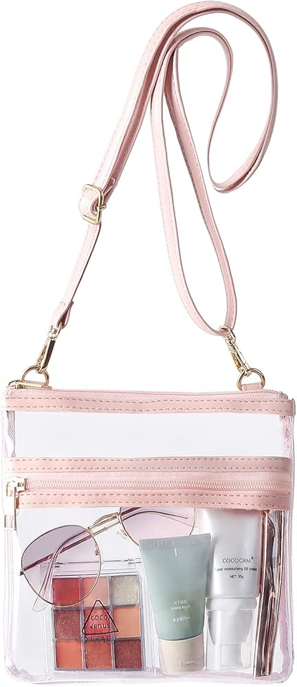 ✅Clear Bag Stadium Approved:This clear Purse Bag with a big pocket see through bag,can keep your belongings for keys, sun lotion,wallet,phone,sunglasses,cards,cash,etc,perfect for concert,stadium,sports events,enables security personnel to identify the items inside the bag at a glance and help you pass through security quickly.