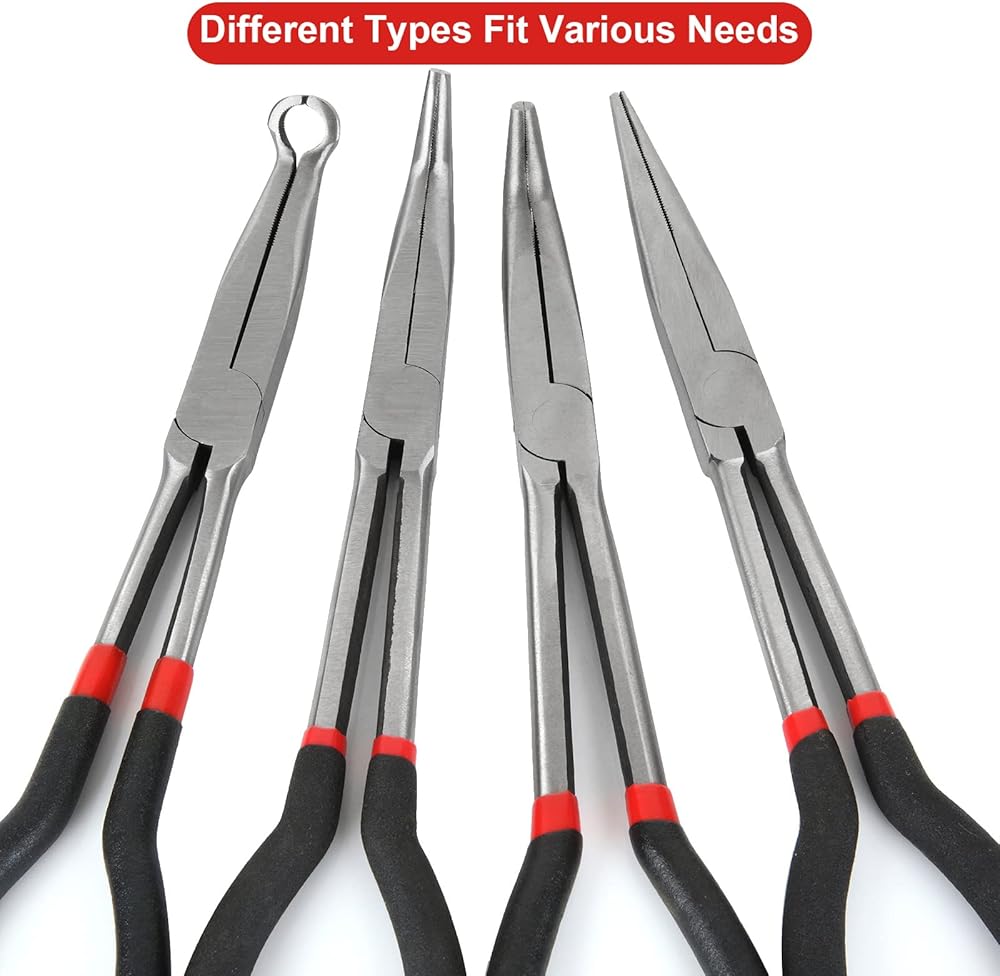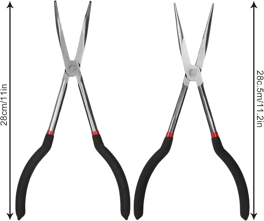 Long Nose Pliers: Long handles reach deep into tight spaces, non-slip grips are comfortable and easy to handle