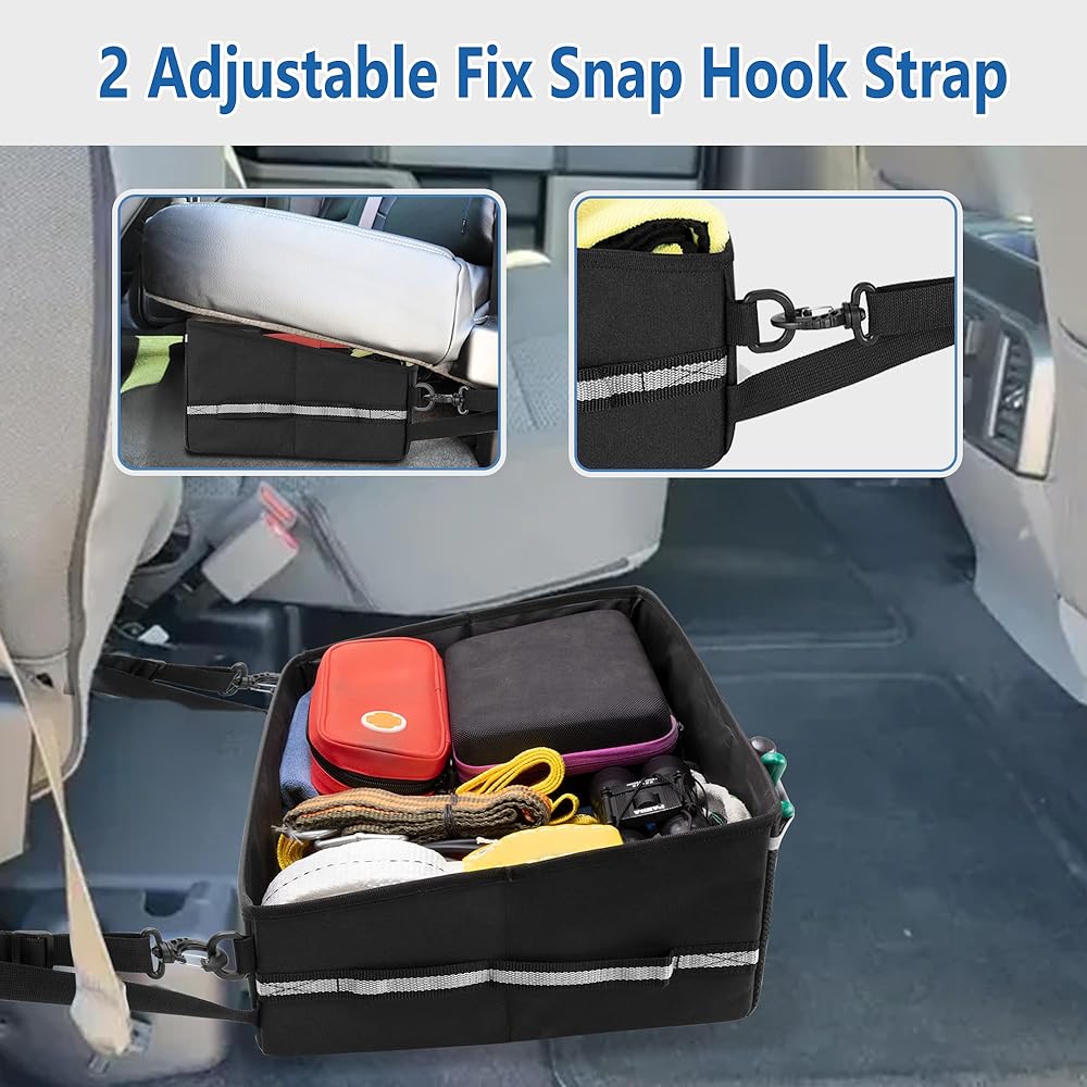 EASY TO CARRY: The truck under seat organizer is equipped with short handles on both sides, allowing you to easily pull it out without lifting the seat. Under seat storage box equipped with sturdy adjustable lobster clasp strap on both sides, which can be fastened to seat pillars to keep it in place.
