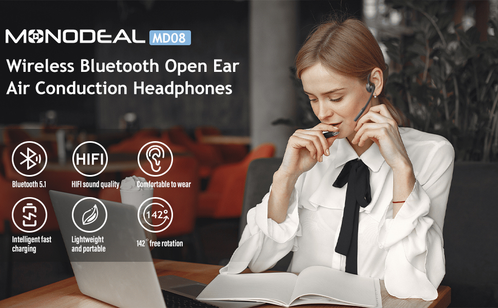 MONODEAL Bone Conduction Headphones with Mic,Open Ear Headphones Wireless Bluetooth 5.1/Mute Function/Multi-Point Capable,Air Conduction Headphones with Noise Canceling Mic,for Driving Home Office