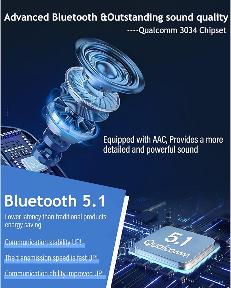 🎧[Upgraded Air-conduction Headphones]: As an upgraded version of bone conduction bluetooth headphones, the Air Conduction Bluetooth Headset uses air to transmit sound waves to the cochlea, without producing the headache-inducing vibrations of bone conduction. It is more comfortable and doesn't cause any pressure or pain even when worn for a long time.