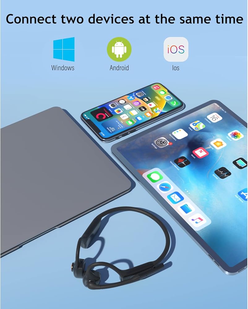 💻[Multi-Device Connection & Long Battery Life]: This conduction headphones can simultaneously connect to two devices, and is compatible with almost all devices with Bluetooth capabilities, including Android, IOS, and Windows. It supports Type-C fast charging and provides up to 8 hours of continuous music playback or talk time on a full charge. It is very suitable for use in the office, indoor exercise, driving, commuting, etc.