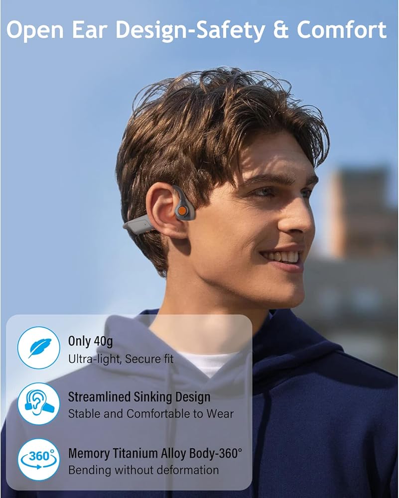 ✨[Open-Ear Design & Easy to Use]: The non-blocking ear design is comfortable and lightweight, which not only doesn't damage your hearing but also allows you to be aware of your surroundings while enjoying audio and voice calls, avoiding potential dangers. The multifunctional button on the headphones with mic allows you to answer/reject/hang up calls, switch tracks, play/pause, and access voice assistance with just one click.