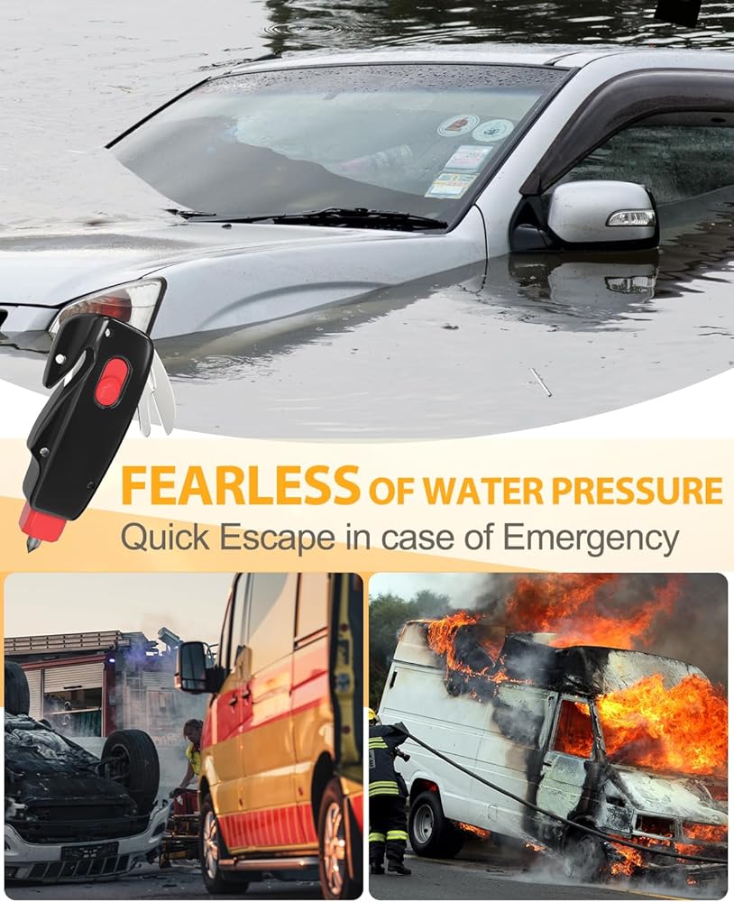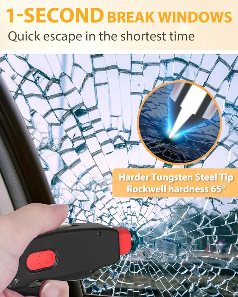 [Widely Use & Fearless Underwater & Great Gifts] - CAREVER car gadgets window breaker keychain is an essential safety tool for drivers, passengers, and outdoor enthusiasts, offering quick and easy escape in case of emergency situations like car accidents, fire, drowning, etc. It's also a perfect gift for anyone who values safety and preparedness. Upgraded spring 1s quick eject, ensures easy breaking windows underwater making it a fearless choice for anyone who enjoys water-related activities