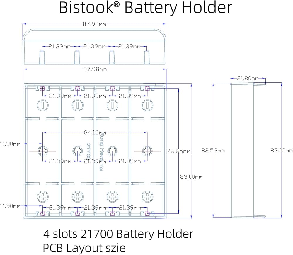 Easy installation & Removal: The 21700 Battery Slot is designed for easy installation.you only need to install the battery easily, and then it can be used with the PCB board.When you need to remove the battery, simply take it out.