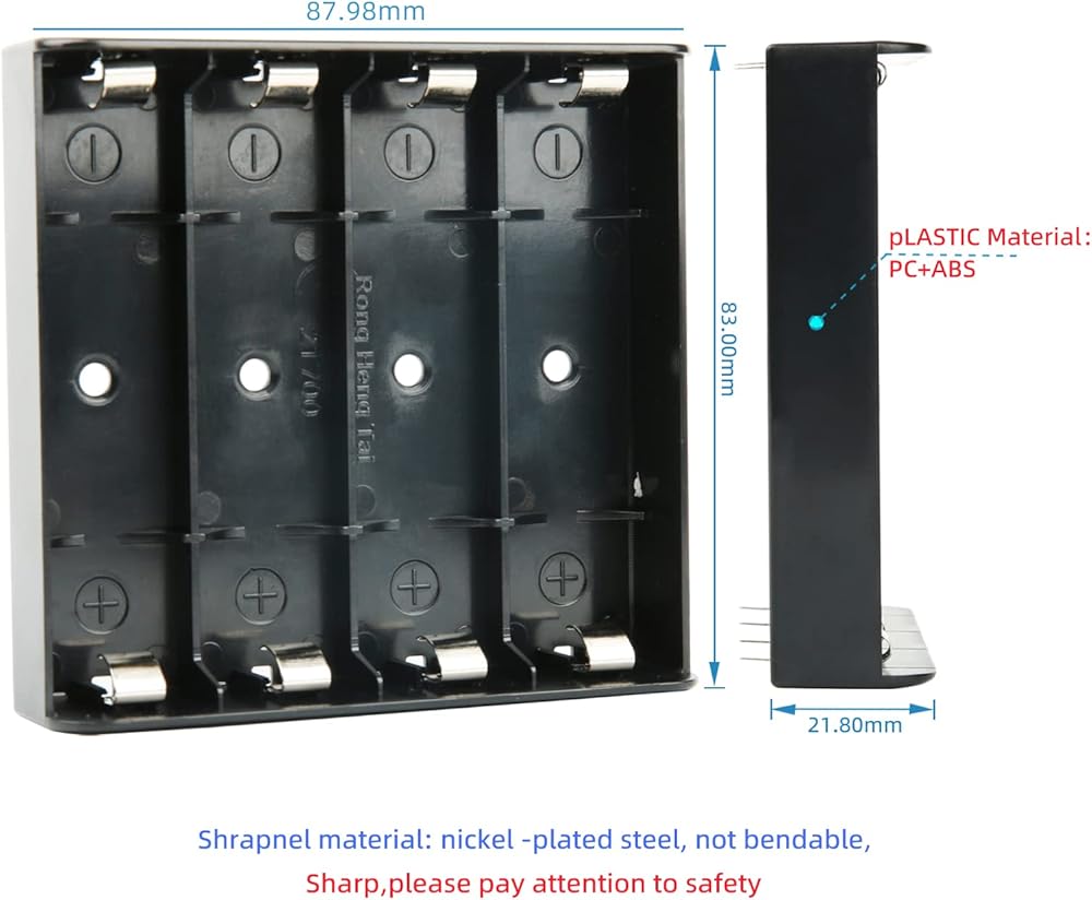High-Quality Material &Easy Conductivity:The 21700 Battery Holder is made of PC+ABS material, which is durable and long-lasting.It features nickel-plated positive and negative terminals with good conductivity and excellent solderability.