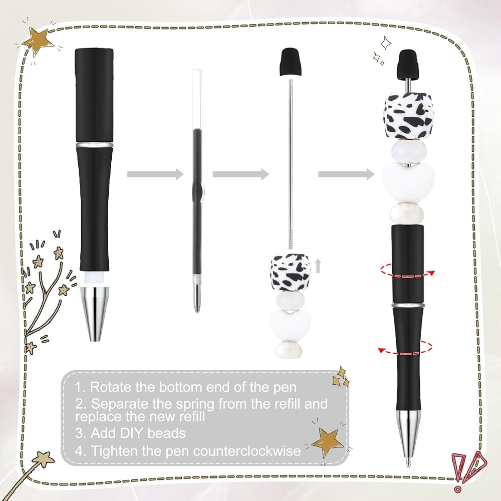 Convenient to Use: the bead pens are very easy to use, just rotate them to open, and the rotation positions are at the bottom; Similarly, if you want to replace the refills, you can also take them off at the bottom and rotate the refills to replace them