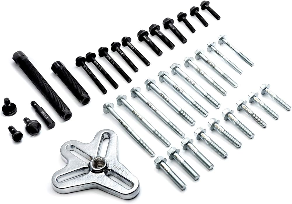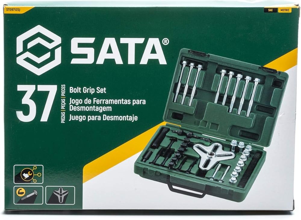 SATA Master Bolt Grip Set : [VERSATILE SET] 1 - Three-Way Yoke, 4 - Puller Tip Set, 11 - Metric Bolt Set, 8 x 40mm (3), 8 x 65mm (2), 8 x 80mm (3), 10 x 50mm (3), 19 - SAE Bolt Set, 1/4 [28] x 3" (2), 3/8 [16] x 2" (3), 3/8 [16] x 4" (3), 3/8 [24] x 2" (3), 5/16 [18] x 2" (3), 5/16 [18] x 4-1/2" (3), 5/16 [24] x 3-1/2" (2), 2 - Center Screws for Puller, [RELIABLE] Includes both Metric & SAE bolt sizes, [VERSATILITY] Universal applications work on harmonic balancers, steering wheels, crankshaft pulleys and gear, [MULTI-FUNCTIONAL] Capable of handling almost every two or three-way bolt pull on most cars, pickups, SUV'sand small engines