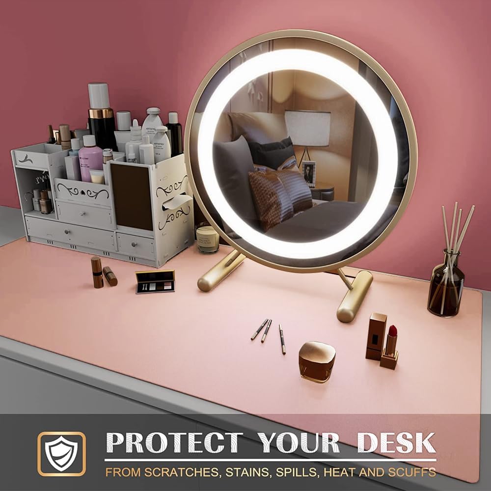 The desk pad protects your makeup desk from scratches, stains, spills, heat, and scuffs.