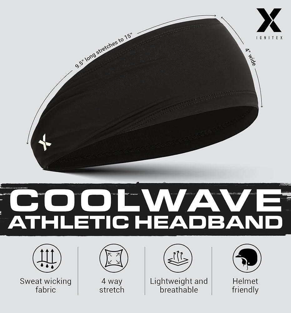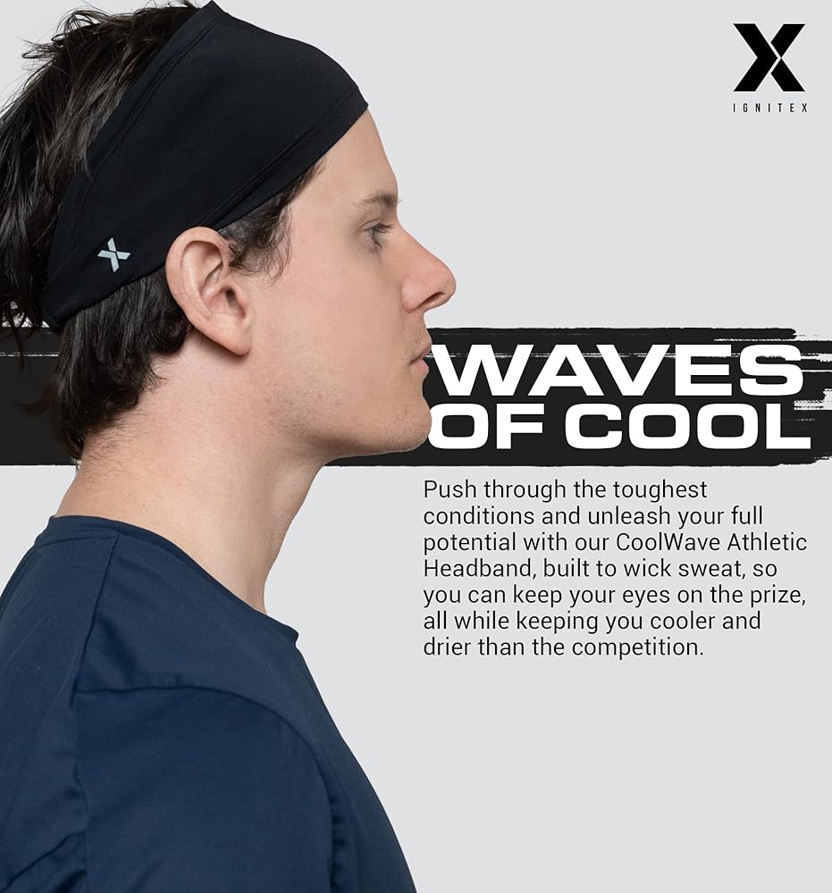 CoolWave Heat Reducing Fabric: When the heat is on, you need a headband that can handle the pressure and keep you cool under fire. The CoolWave Athletic Headband is made with a special heat-reducing fabric that combines 95% polyester and 5% spandex, so you can stay dry and focused during even the most intense workouts and extreme sports environments. Whether you're hitting the field, the court, or the gym, CoolWave is the perfect mens headband to take your fitness game to the next level.