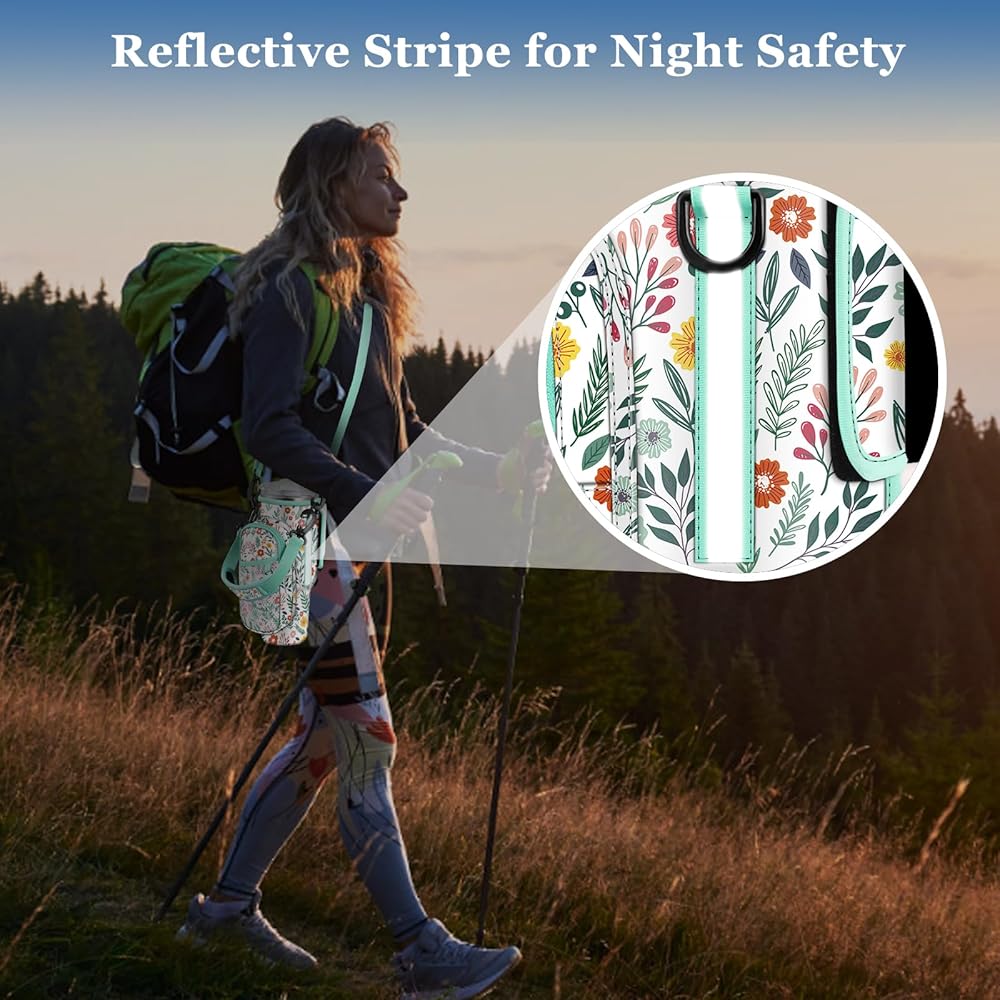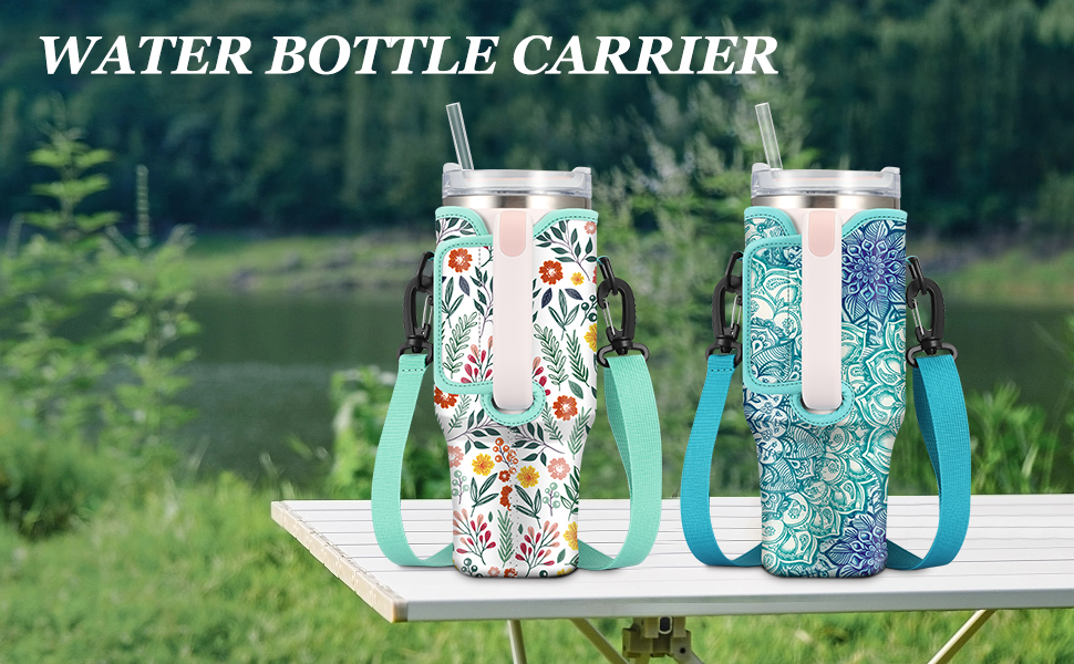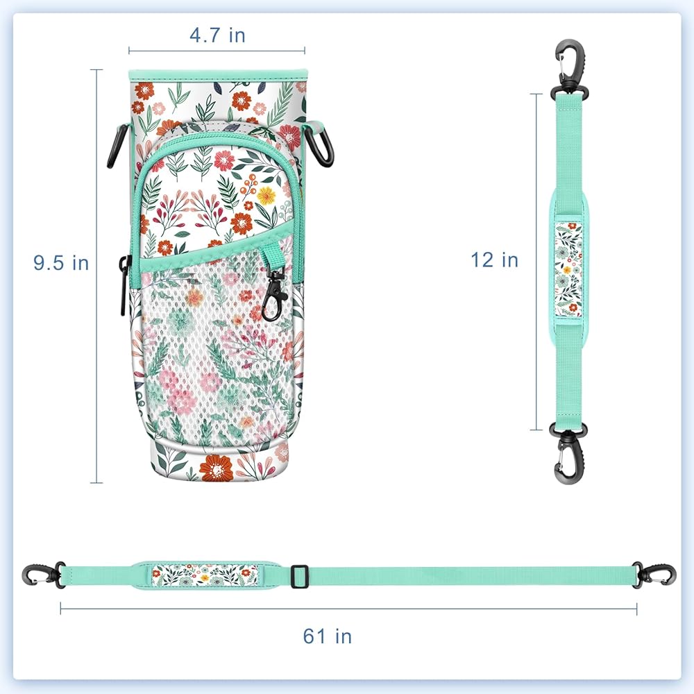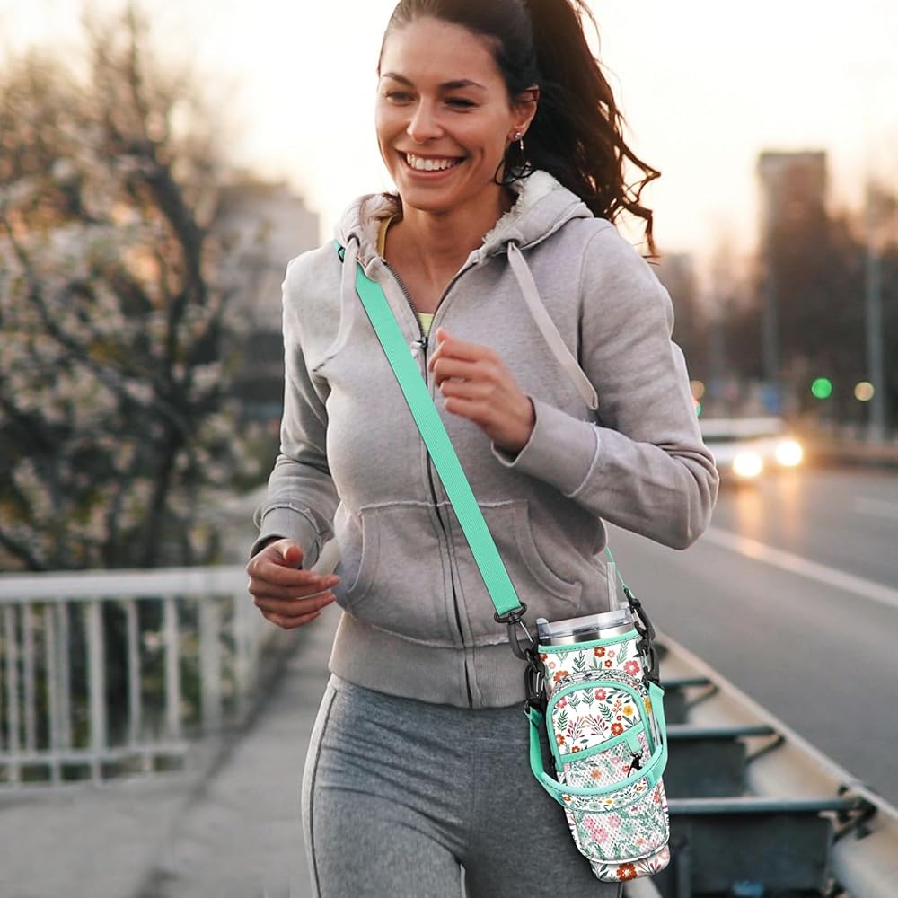 CaseBot Water Bottle Carrier Bag with Phone Pocket for Stanley 40 oz Tumbler with Handle, Neoprene Water Cup Holder with Adjustable Shoulder Hand Strap for Hiking Camping Travelling, Spring Bloom