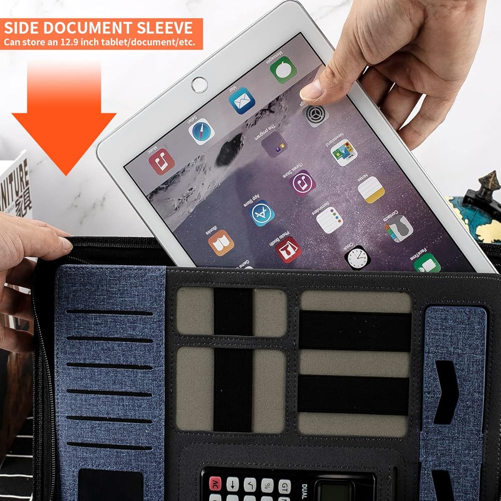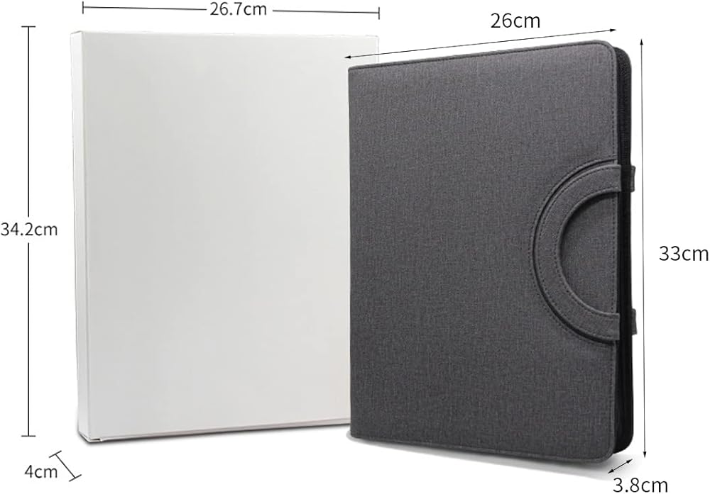 【PERFECT SIZE】Slim zippered portfolio easily fits into most bags & briefcases. The size is 33.3cm*26cm*4.5cm, and the internal clipboard size can accommodate A4 size and Letter size paper or files. The cell phone bag size can accommodate mobile phones up to 6.5 inches or less. The large tablet pocket can hold up to a 12.9-inch tablet. Some office portfolio notebooks / executive binders are too bulky, but portfolio is slim. Perfect for your modern life.