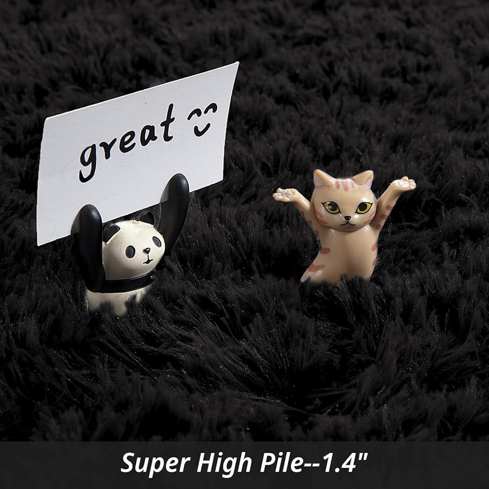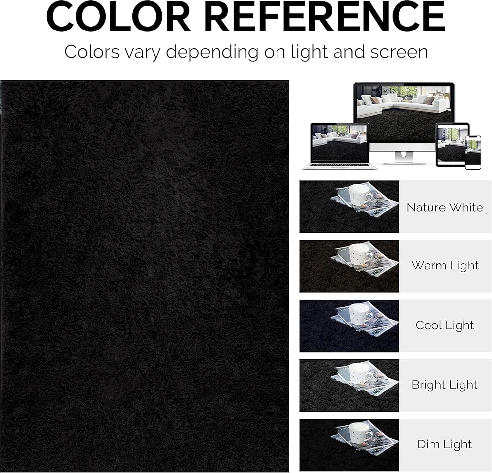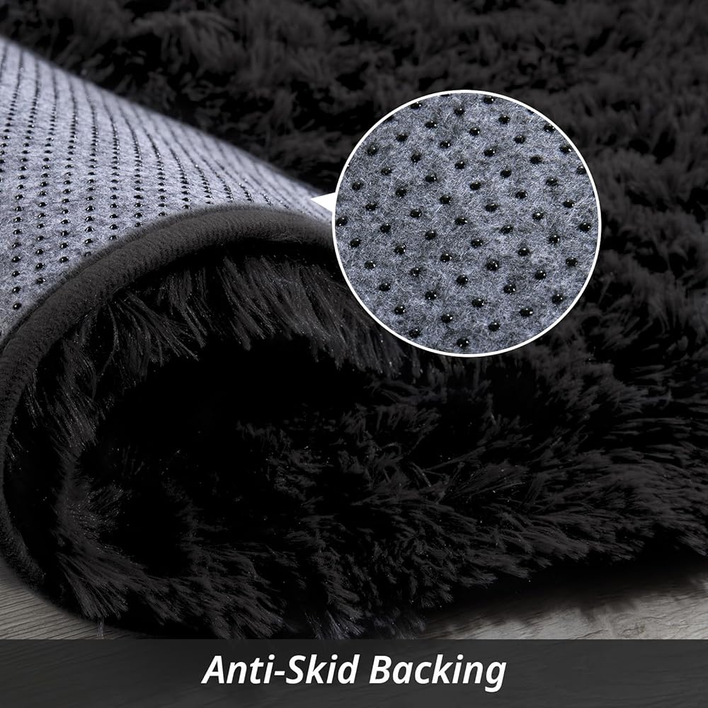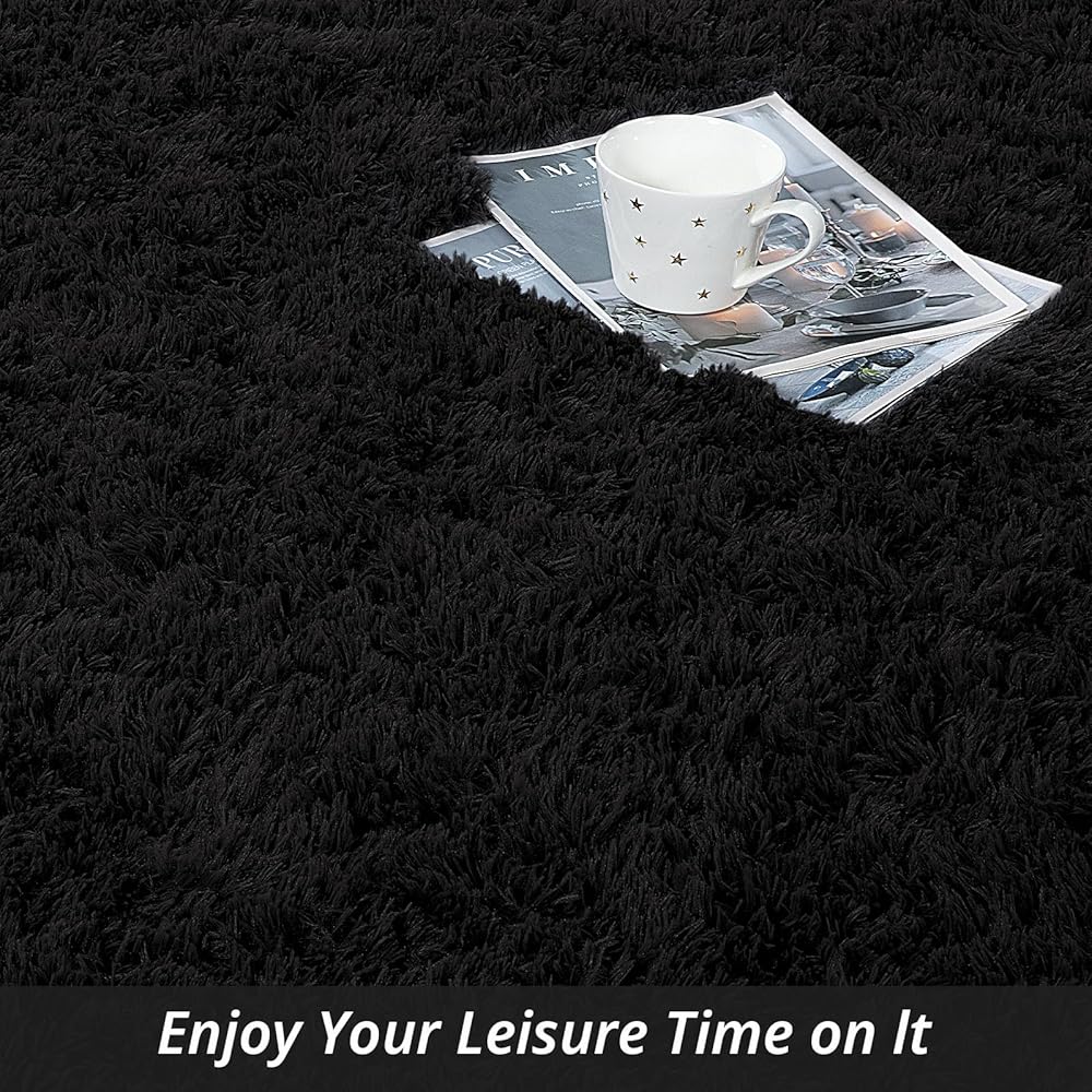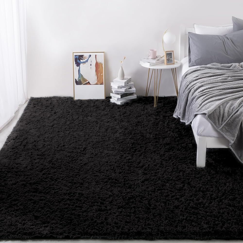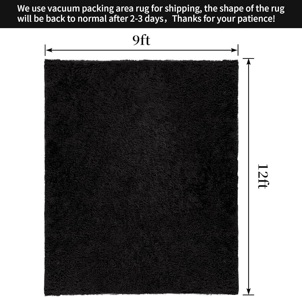 HOMBYS Shaggy Area Rug 9x12 Feet, Ultra Fuzzy Large Plush Faux Fur Carpet for Living Room Bedroom, Non-Skid Fuzzy Rug for Kids Playroom Home Decor, Black