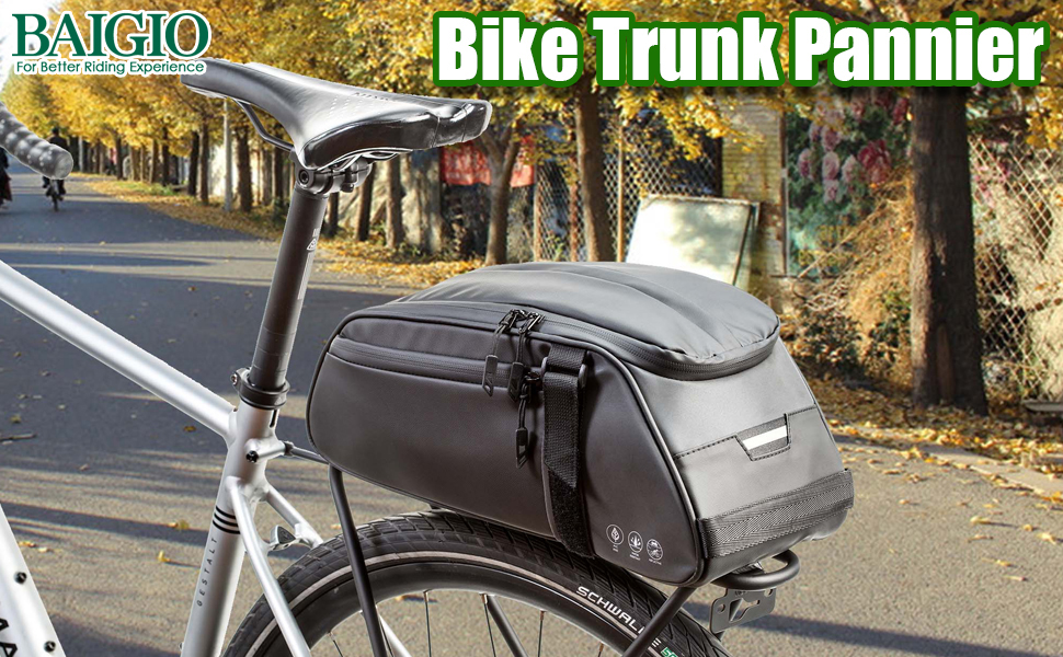 BAIGIO Bike Rack Bag Waterproof Bicycle Trunk Pannier Rear Seat Storage Pack Cycling Cargo Carrier Pouch for Travel City Commuting Daily Work (9735-Black)