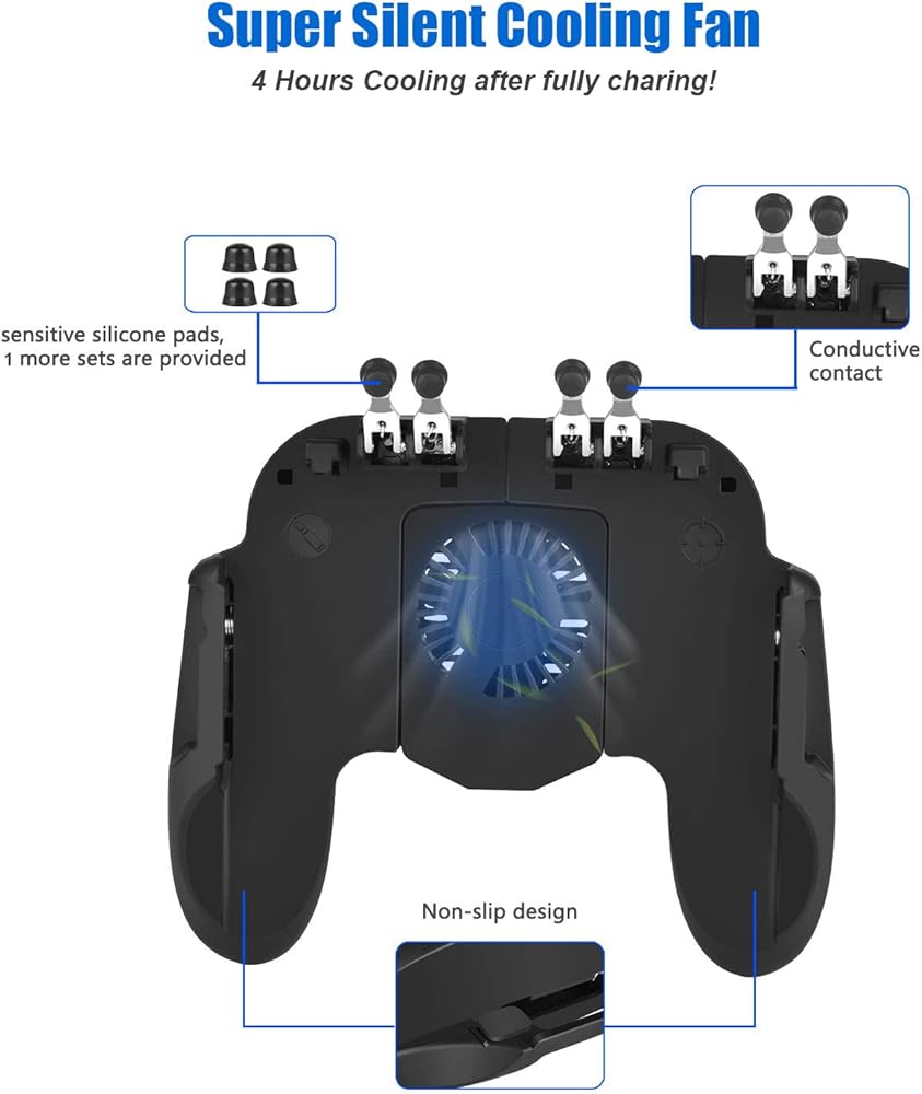 8 in 1 PUBG Mobile Phone Game Controller w/Cooling Fan, Cell Phone Gaming L2R2 L1R1 Triggers gamepad for PUBG/Fortnite/Call of Duty for 4.7-6.5" Android iOS Phone with 6pcs Finger Sleeves