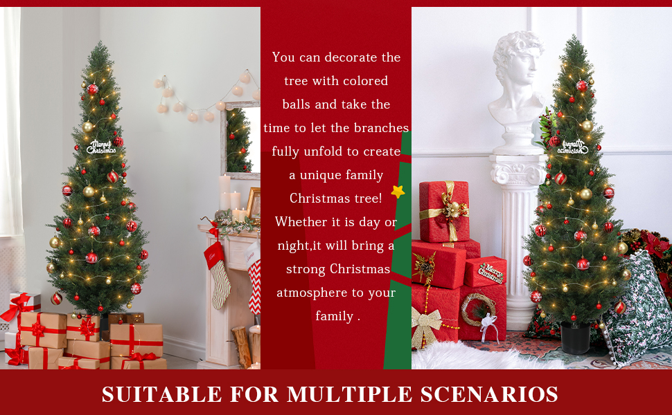 High quality Christmas decorations: The LUWENER fake Christmas tree is perfect for Christmas decorations. It can hang Christmas decorations all over the branches, and our packaging includes two decorations. This potted plant allows you to fully experience the strong festive atmosphere of Christmas