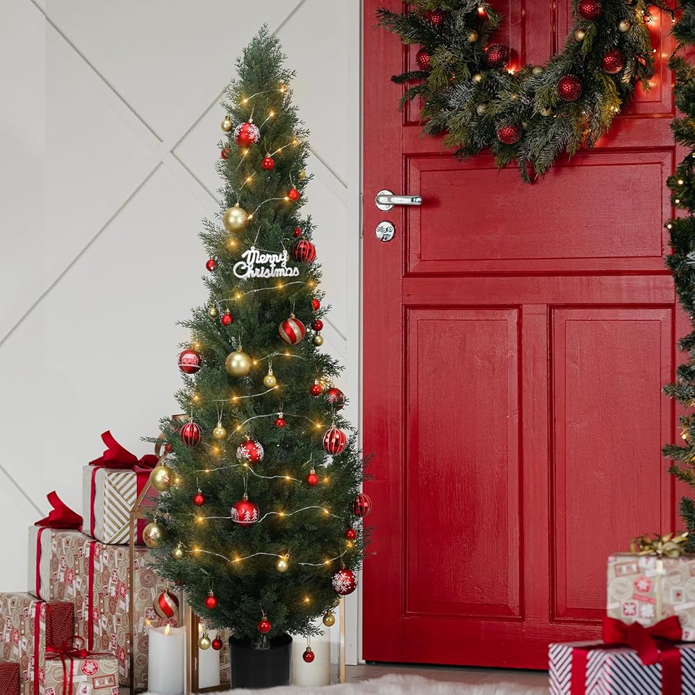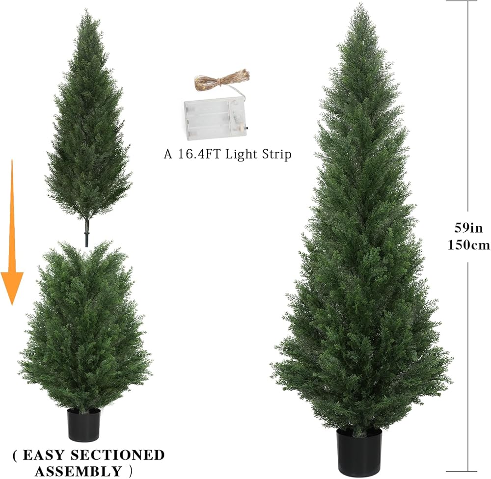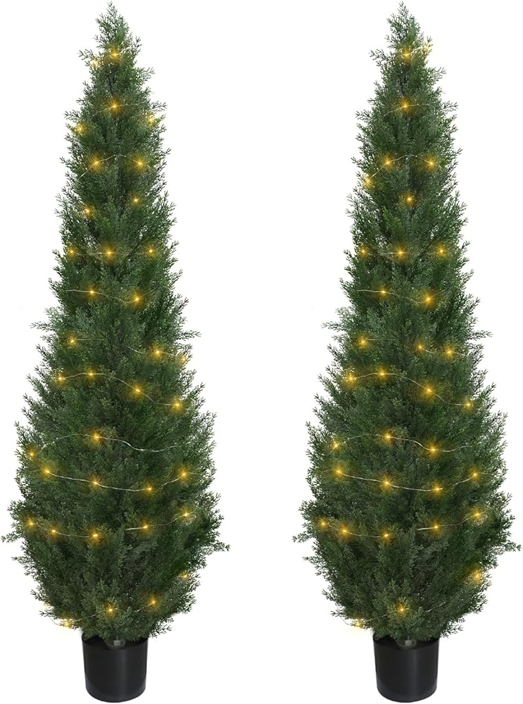 Two 5FT Artificial Cedar Topiary Christmas Trees,Fake Topiary Outdoor Plants in Pot, UV Rated Plant for The Front Door,Christmas Decor,Garden Decor(2pcs Christmas