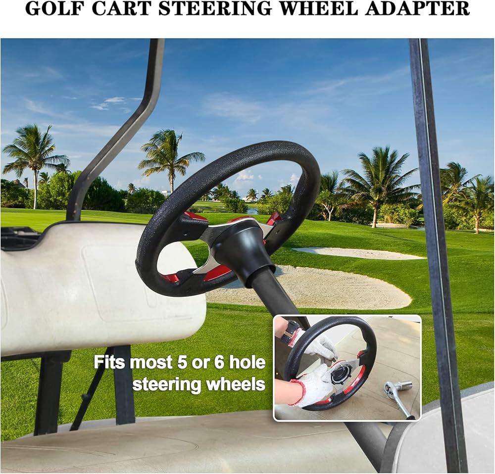 Golf Cart Steering Wheel Adapter - Must be installed with 5 and 6 hole steering wheels (Required and sold separately).Replace your old faded steering wheel and give your golf cart a new look.
