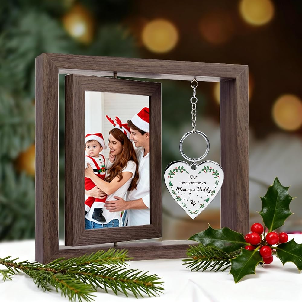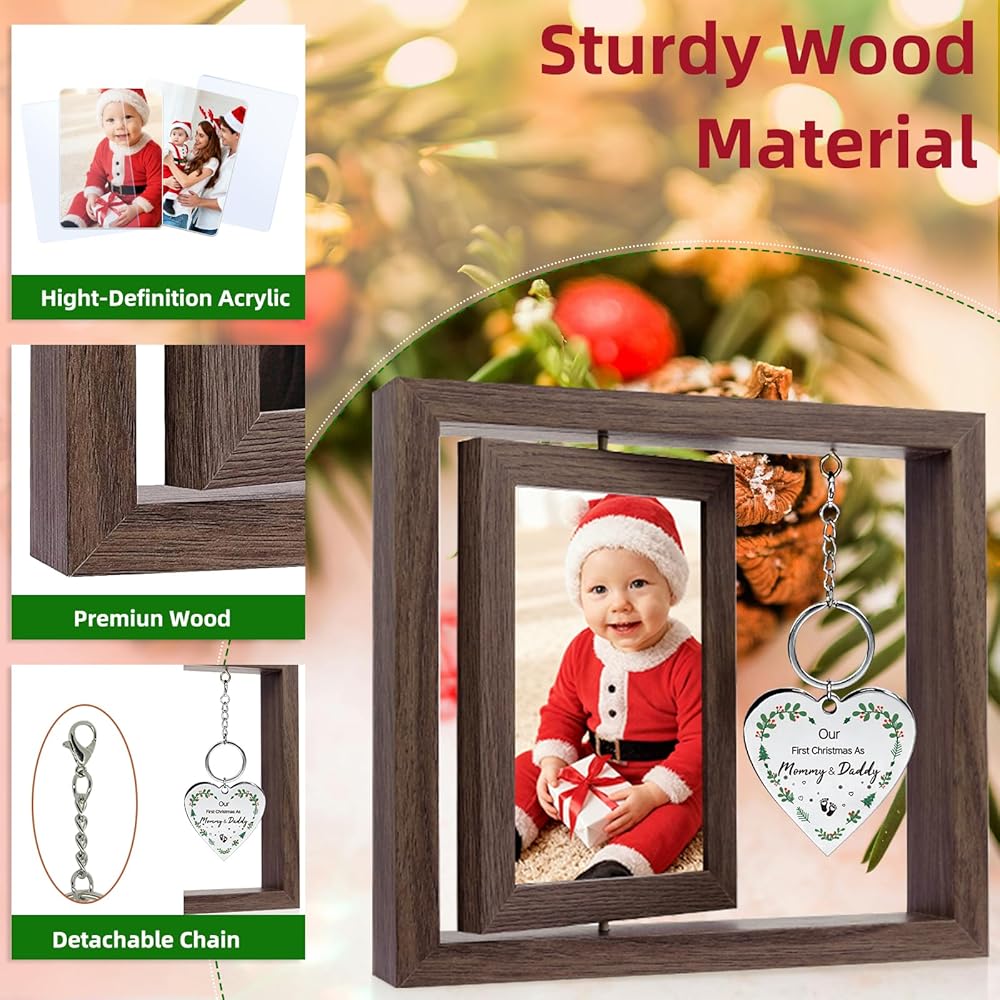 【Sturdy Wedding Gifts for Couples 2024】The 360-degree rotating picture frame is crafted from durable wood, featuring natural wood grains and an enchanting dual-sided display design.This elegant frame allows you to simultaneously showcase 2 of your most cherished memories, making it a perfect home decor sign to record and show off your sweet love