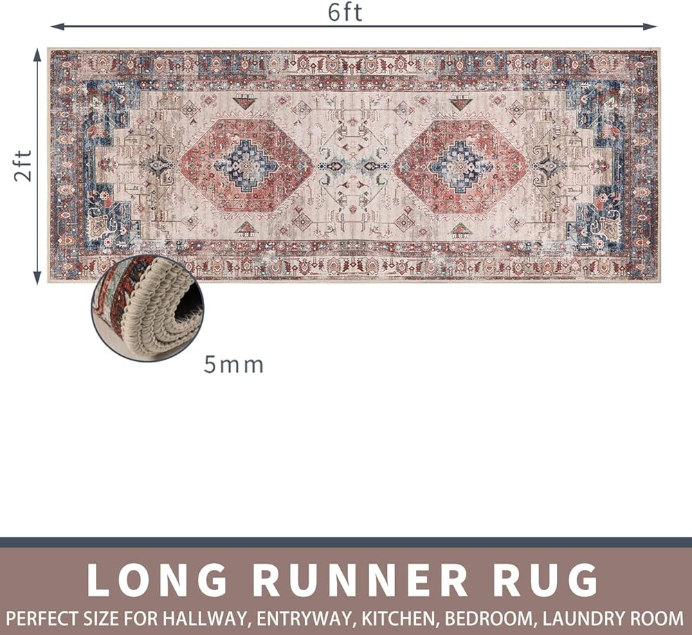 【Versatile Runner Rug】2'x6' hallway runner rugs with the low key soft neutral color can fresh up your areas. Perfect for both modern or vintage spaces as a runner rug decor.And perfectly used as practical floor carpet runners for hallway, entryway runner rug, kitchen floor mats,soft bathroom runners, bedroom runner rug as well bare flooring living room
