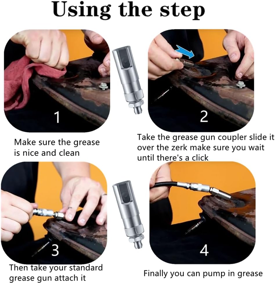 Size: Size and 1/8 inch NPT thread: The size of the grease gun connector is 1.6*0.55*0.55 inch, and it has a 1/8 inch NPT thread adapter, which makes it more applicable.